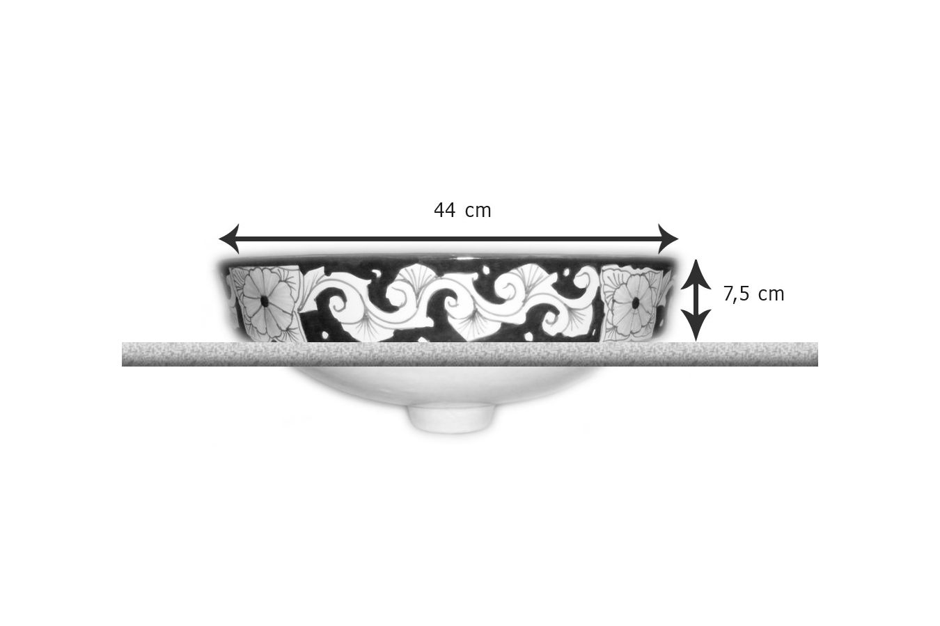 Керамичен умивалник за плот, произведен в Мексико. Богато декорирана и ръчно рисувана мексиканска мивка. Умивалникът е остъклен, което го прави устойчив на надраскване и протриване на шарката.