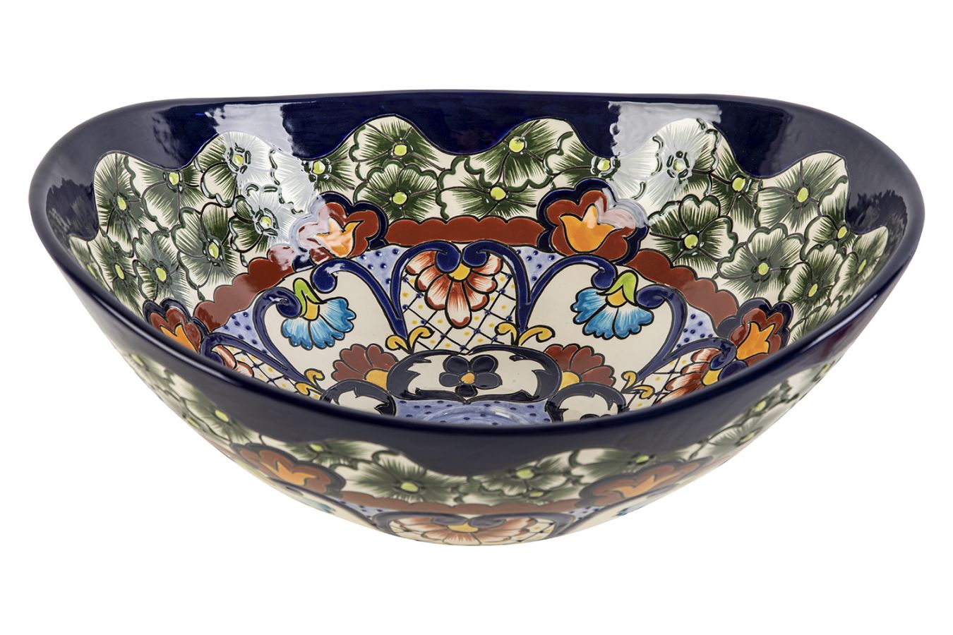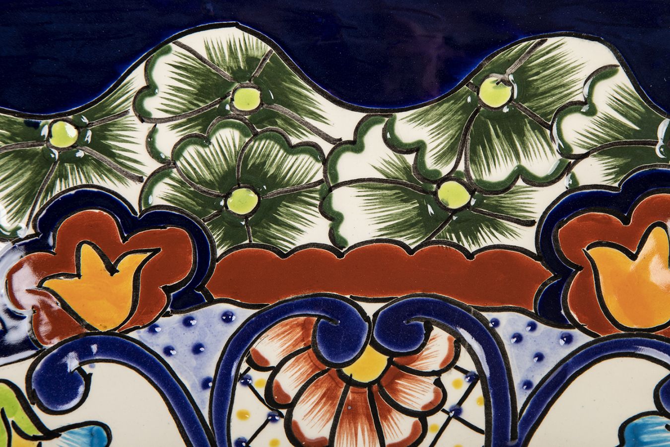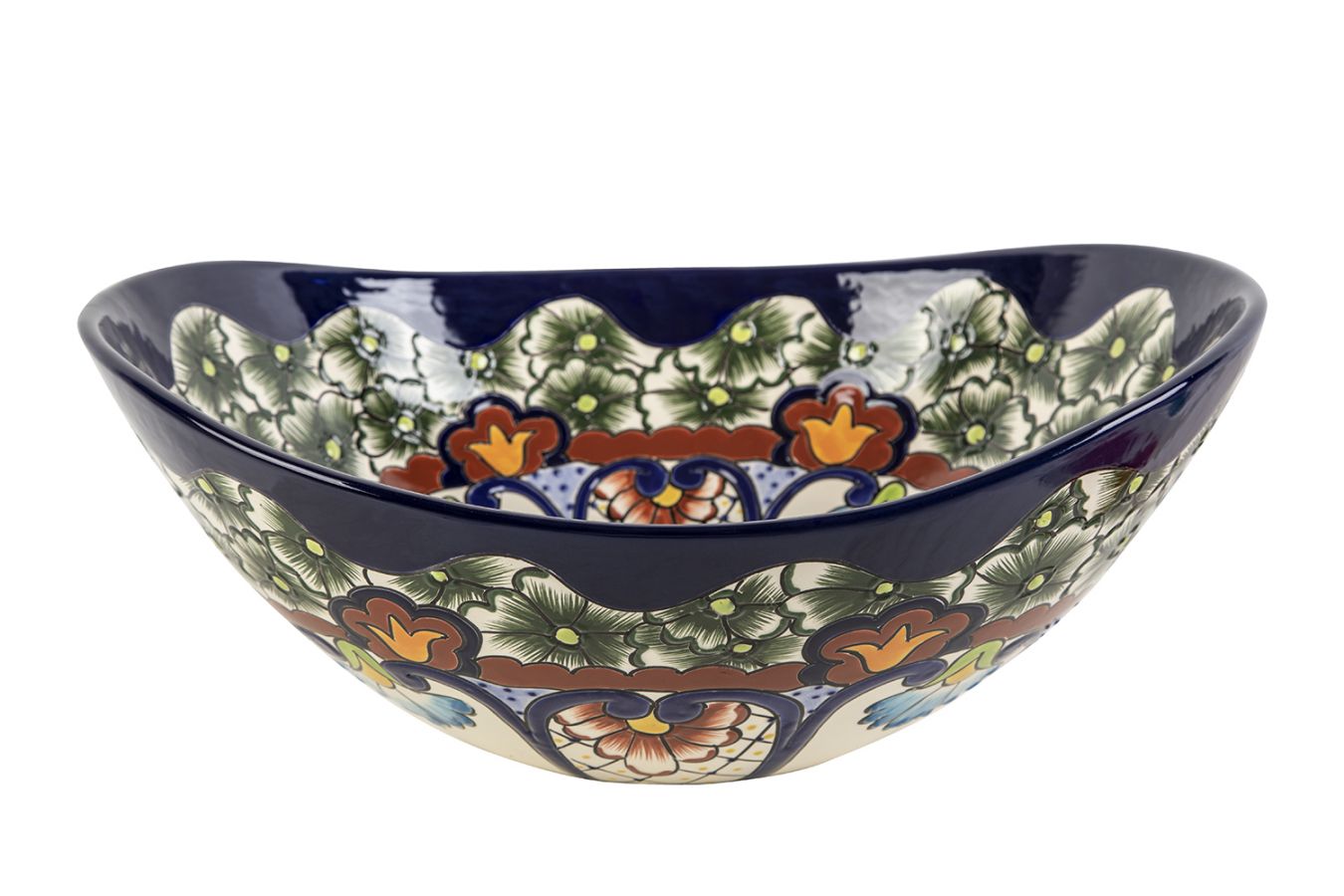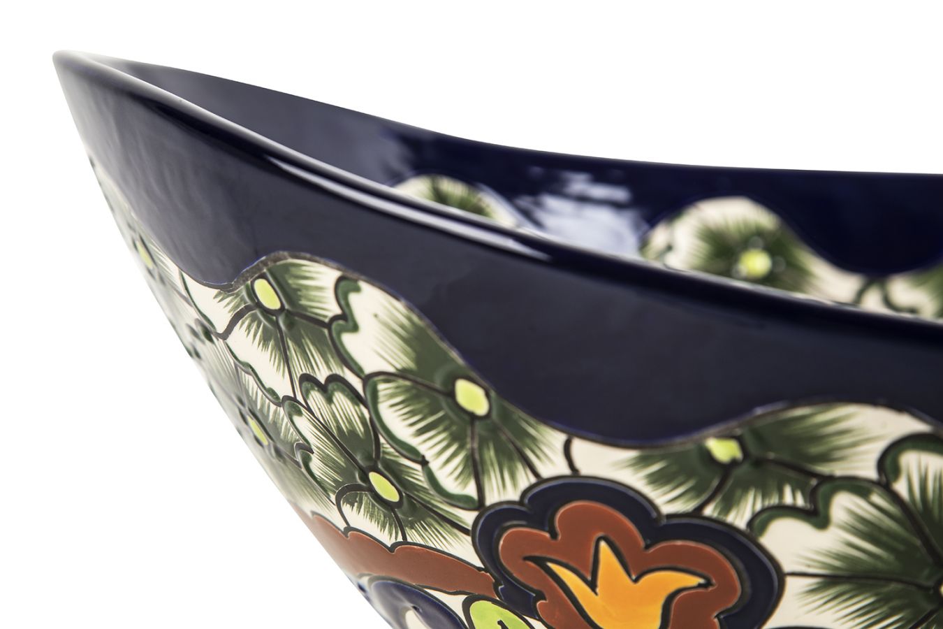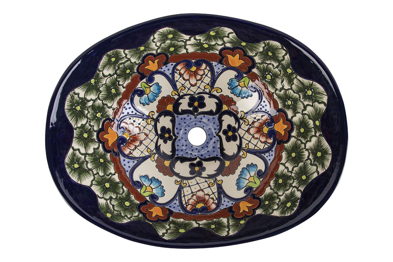 Керамичен умивалник за плот, произведен в Мексико. Богато декорирана и ръчно рисувана мексиканска мивка. Умивалникът е остъклен, което го прави устойчив на надраскване и протриване на шарката.