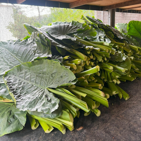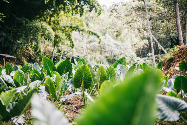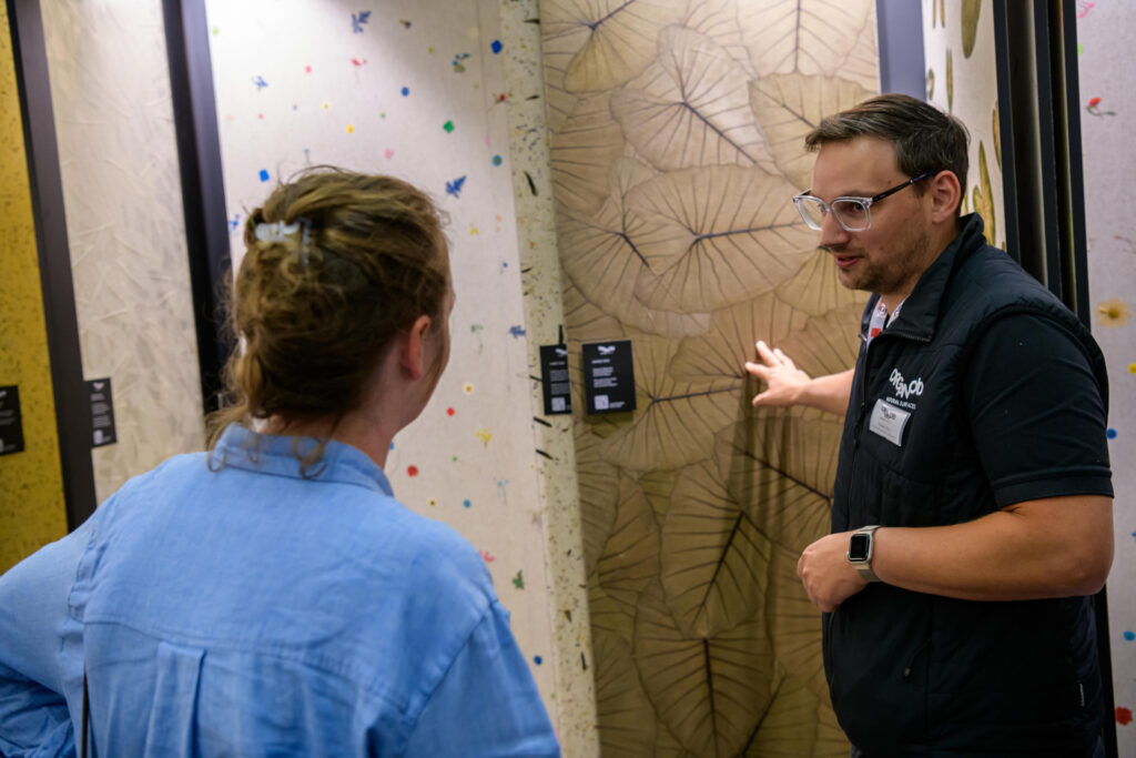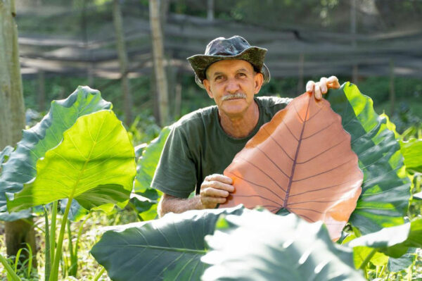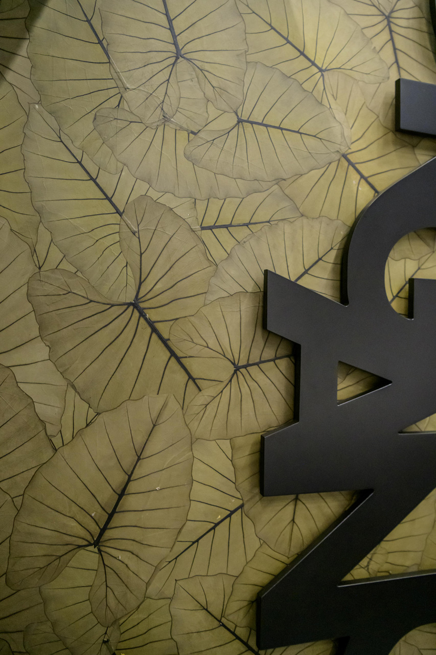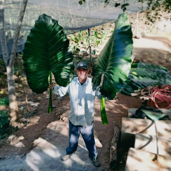 Големите листа на Alocasia macrorrhizos, по-известна като „растение слонско ухо“, се добиват от устойчиво земеделие и залесяващи проекти в Южна Америка. Тяхната естествена структура подпомага подобряването на вътрешния климат, като регулира влажността и допринася за пречистването на въздуха.