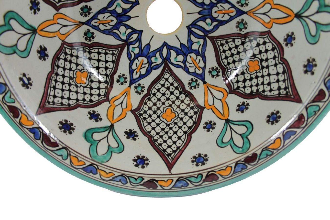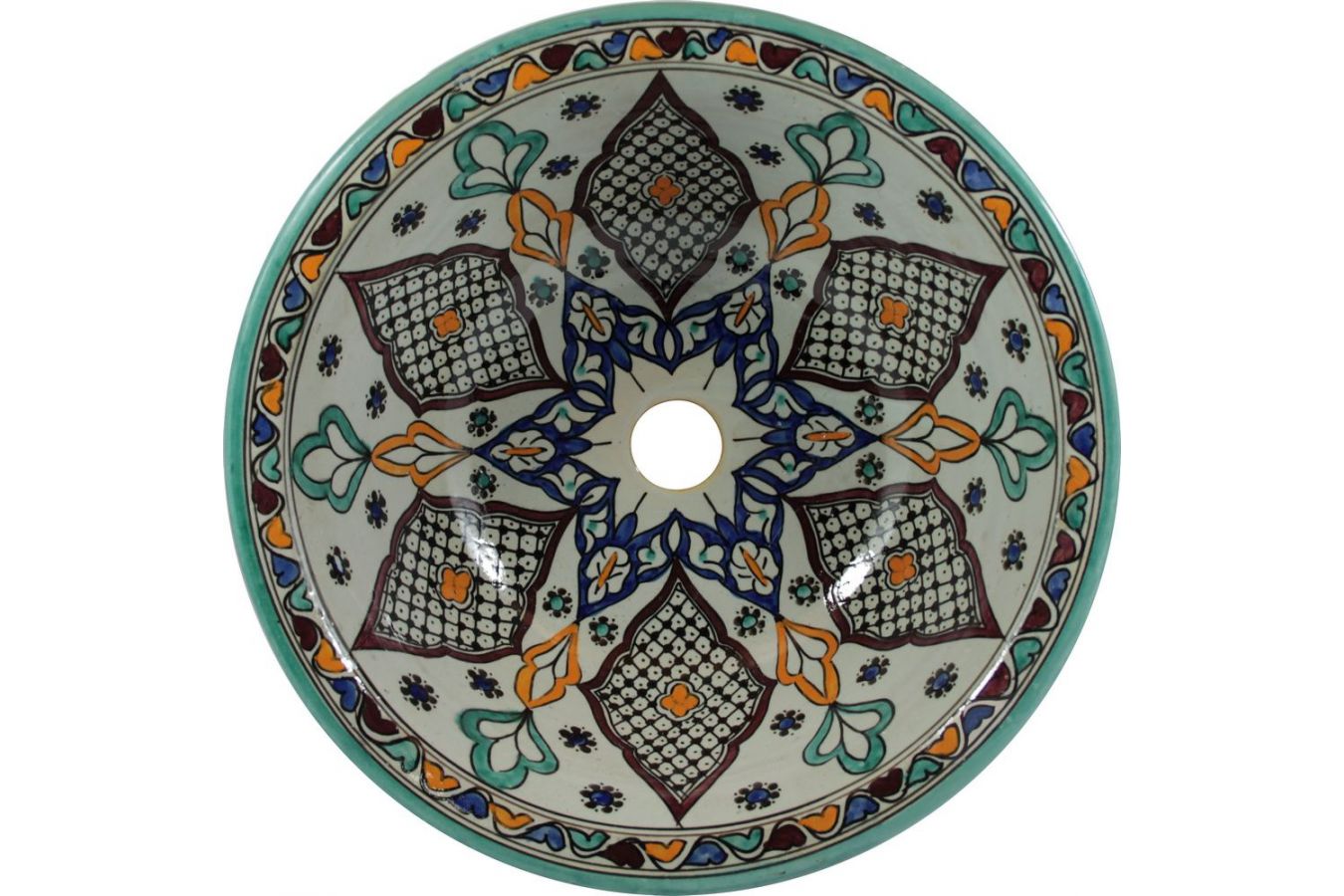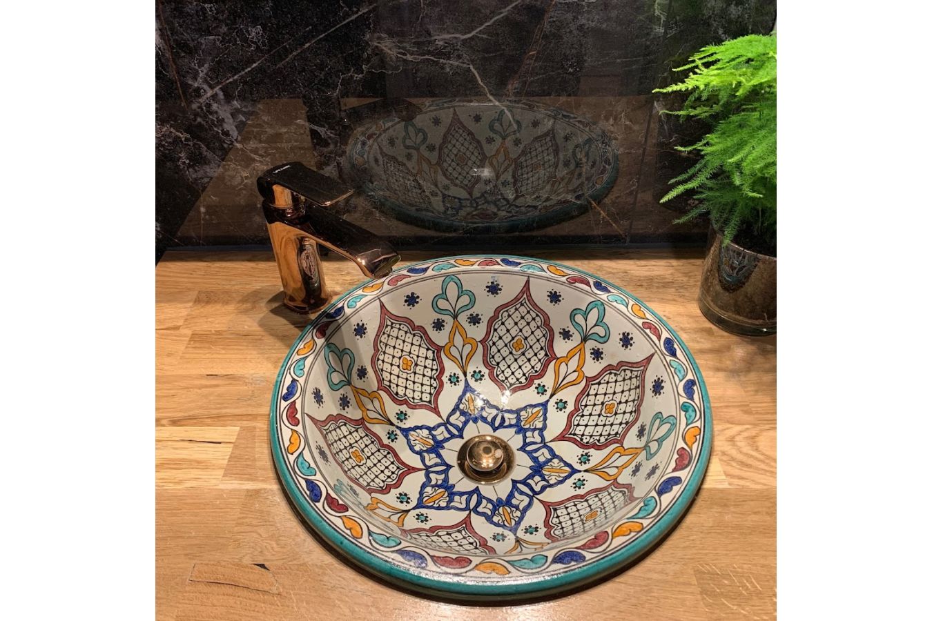 Ръчно рисувана турска мивка, произведена в района Кютахя, известен със своята керамика. Керамичният умивалник е остъклен, което го прави устойчив на надраскване и избледняване на цвета. Мивката ще се впише в интериора на всяка баня.