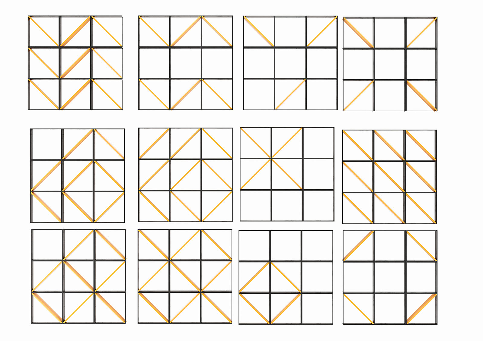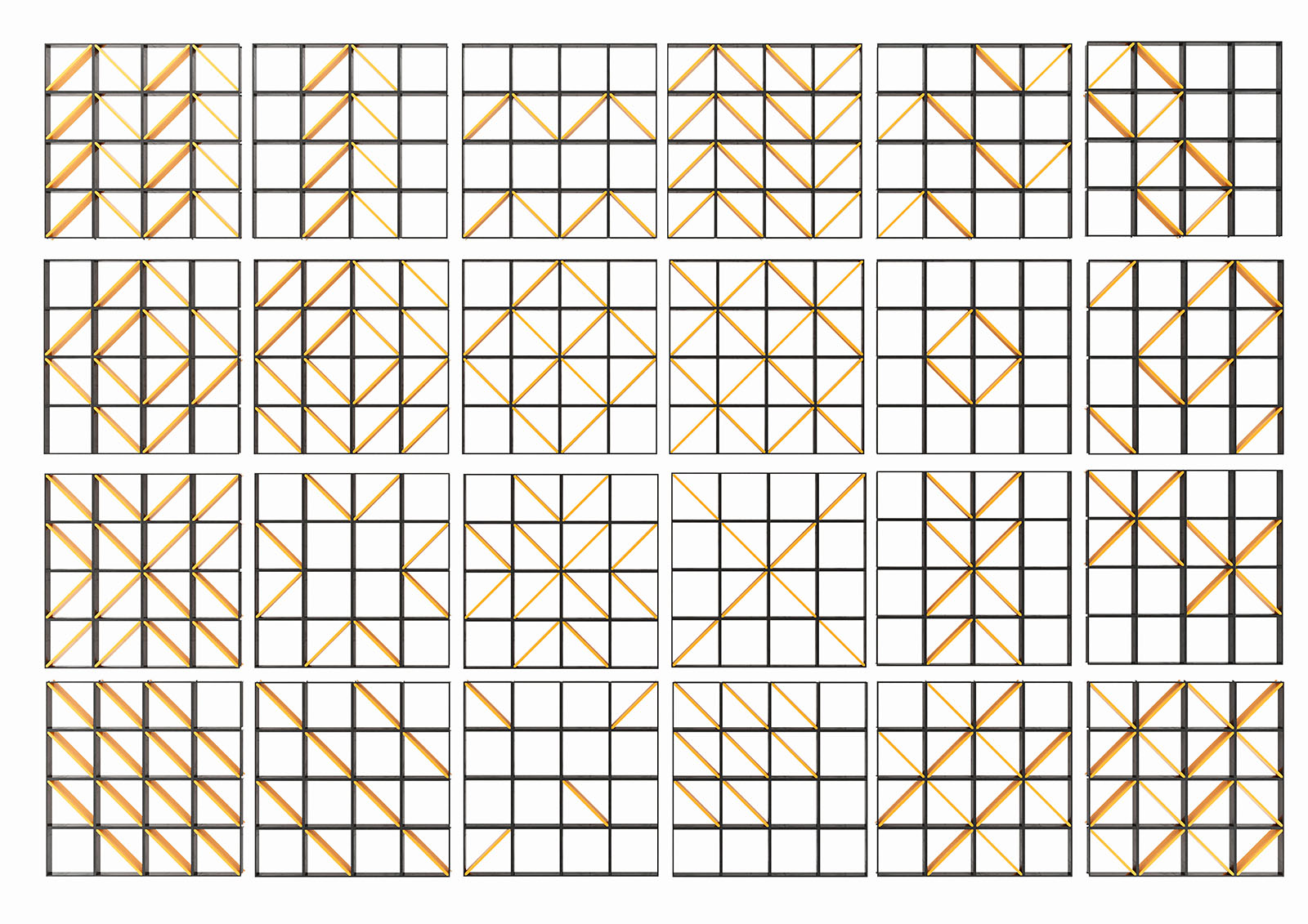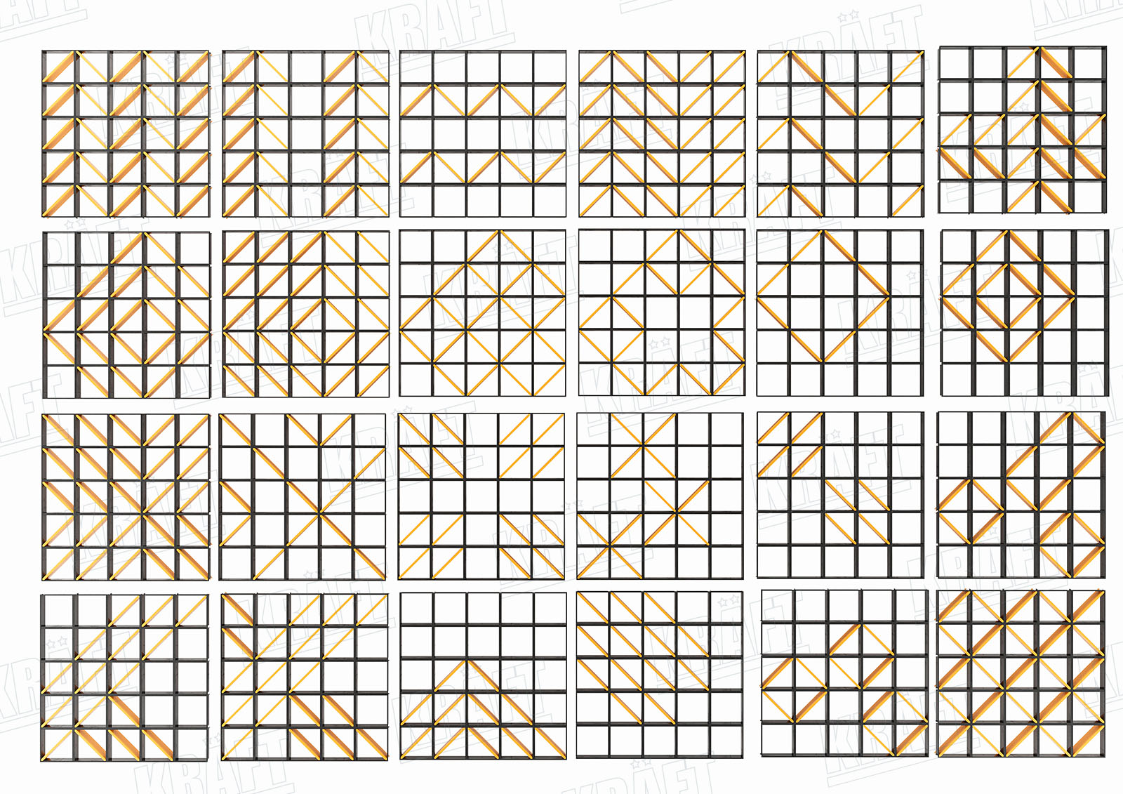 Примери за шарки с използване на диагонални профили при различни размери на клетките на класически открит таван
