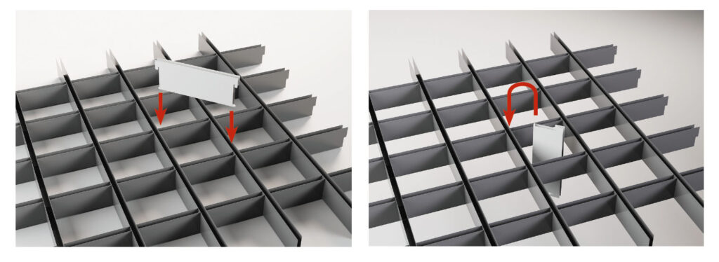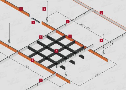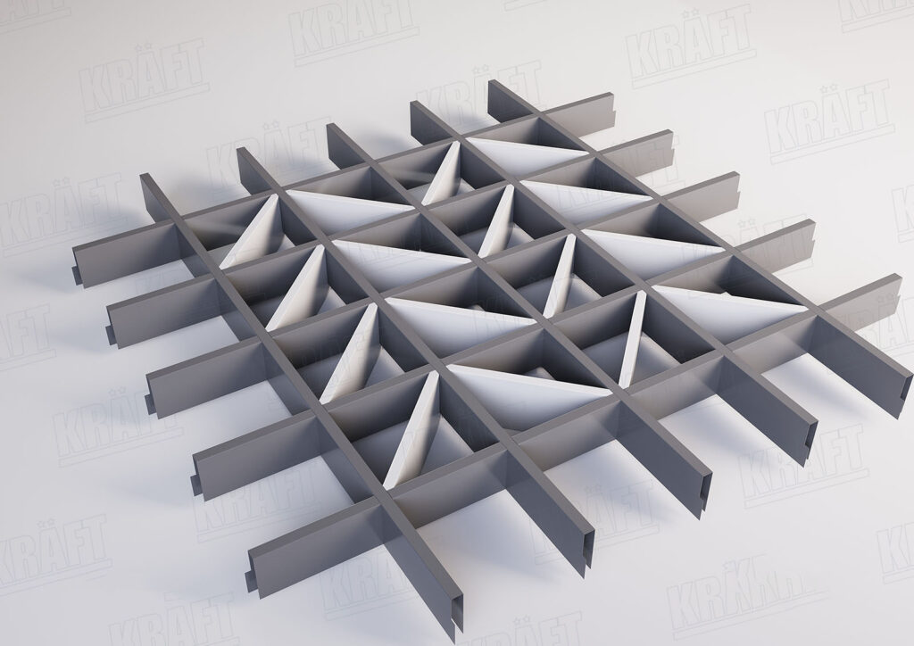 Диагоналните профили са създадени за класически открити тавани с клетки 100x100 мм, 120x120 мм, 150x150 мм, 200x200 мм.