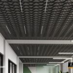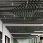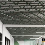 Благодарение на това решение можете не само да декорирате цялото помещение, но и да използвате по-голям размер на клетката, отколкото е първоначално предвидено. Прозрачността на триъгълния открит таван е по-малка в сравнение с обикновения. Така например триъгълен открит таван с клетка 100x100 мм е еквивалентен на обикновен открит таван с клетка 60x60 мм, 150x150 мм е еквивалентен на 86x86 мм, а 200x200 мм – на 120x120 мм.