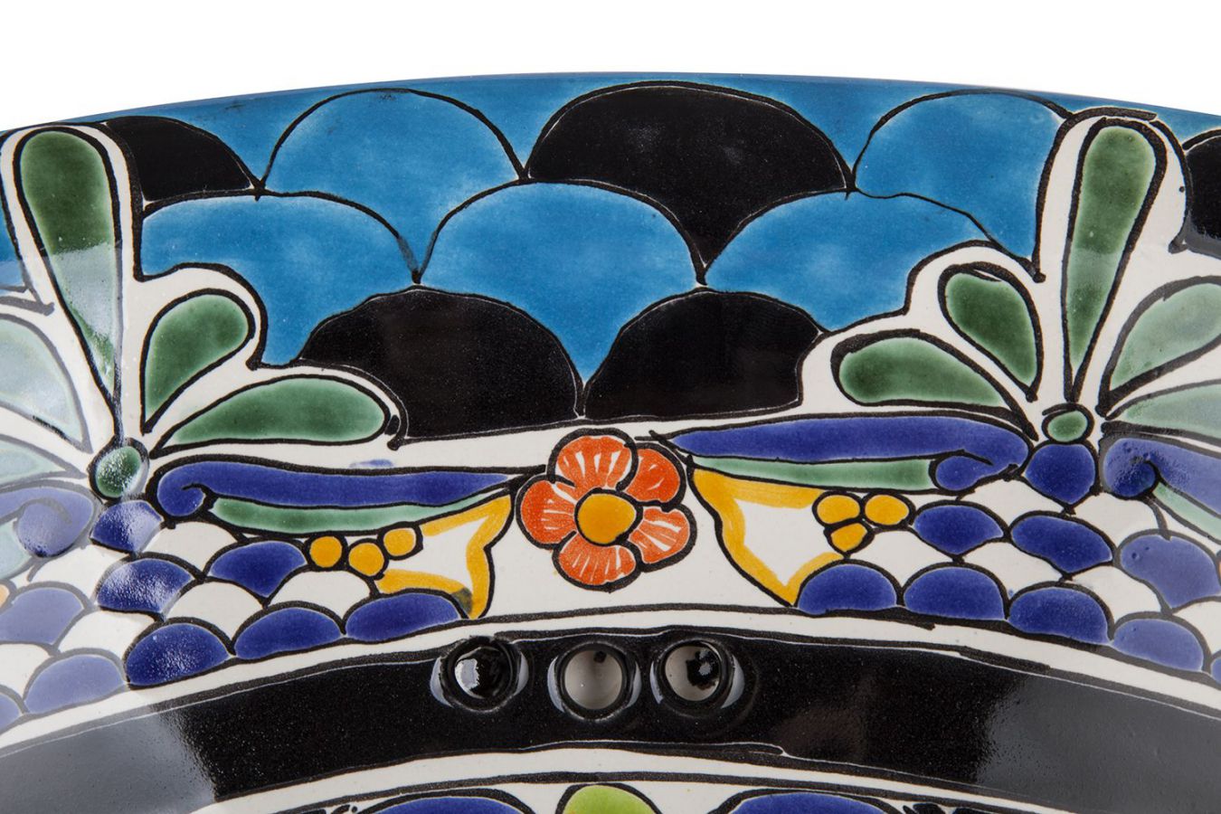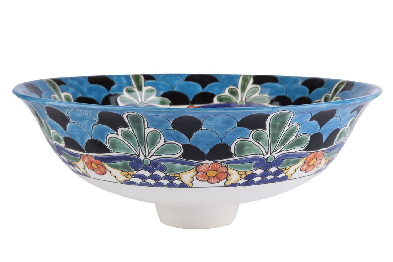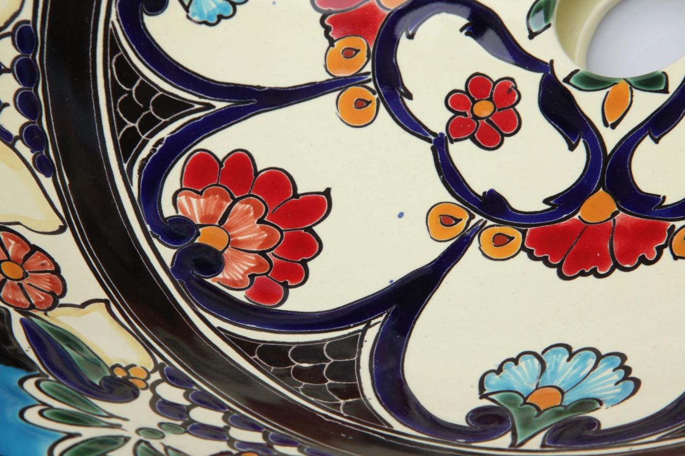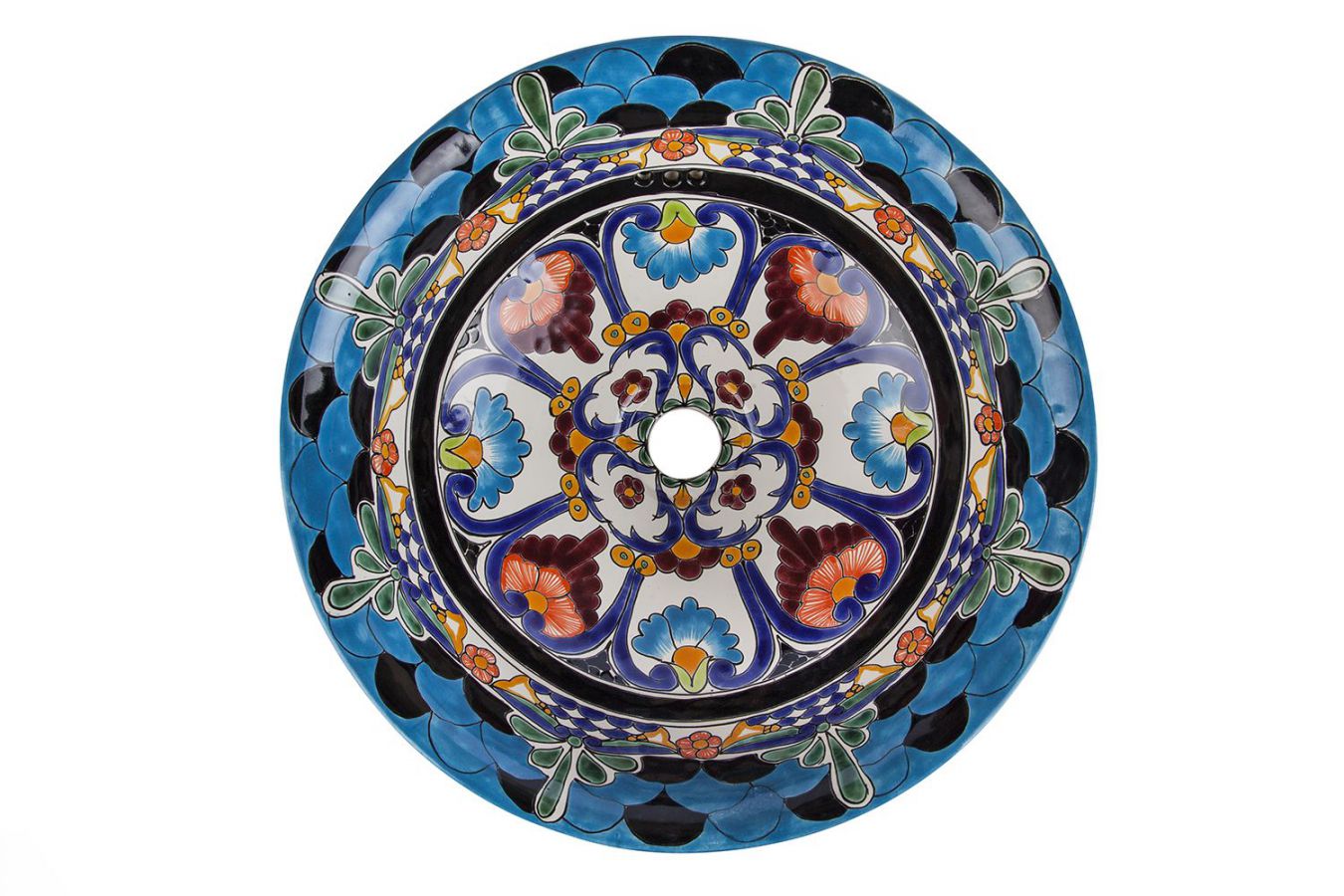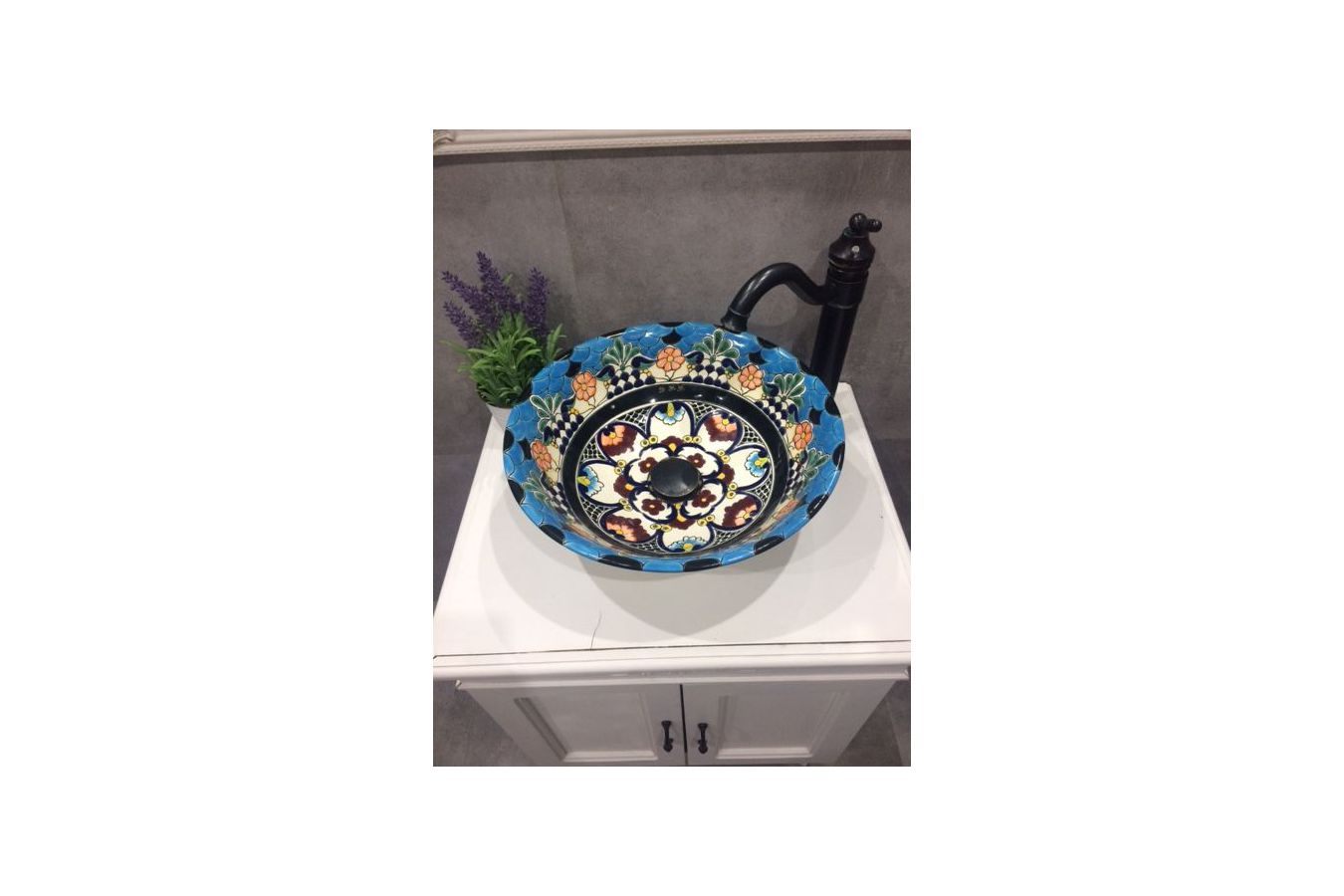 Керамичният умивалник е изработен и изрисуван от мексикански майстори.