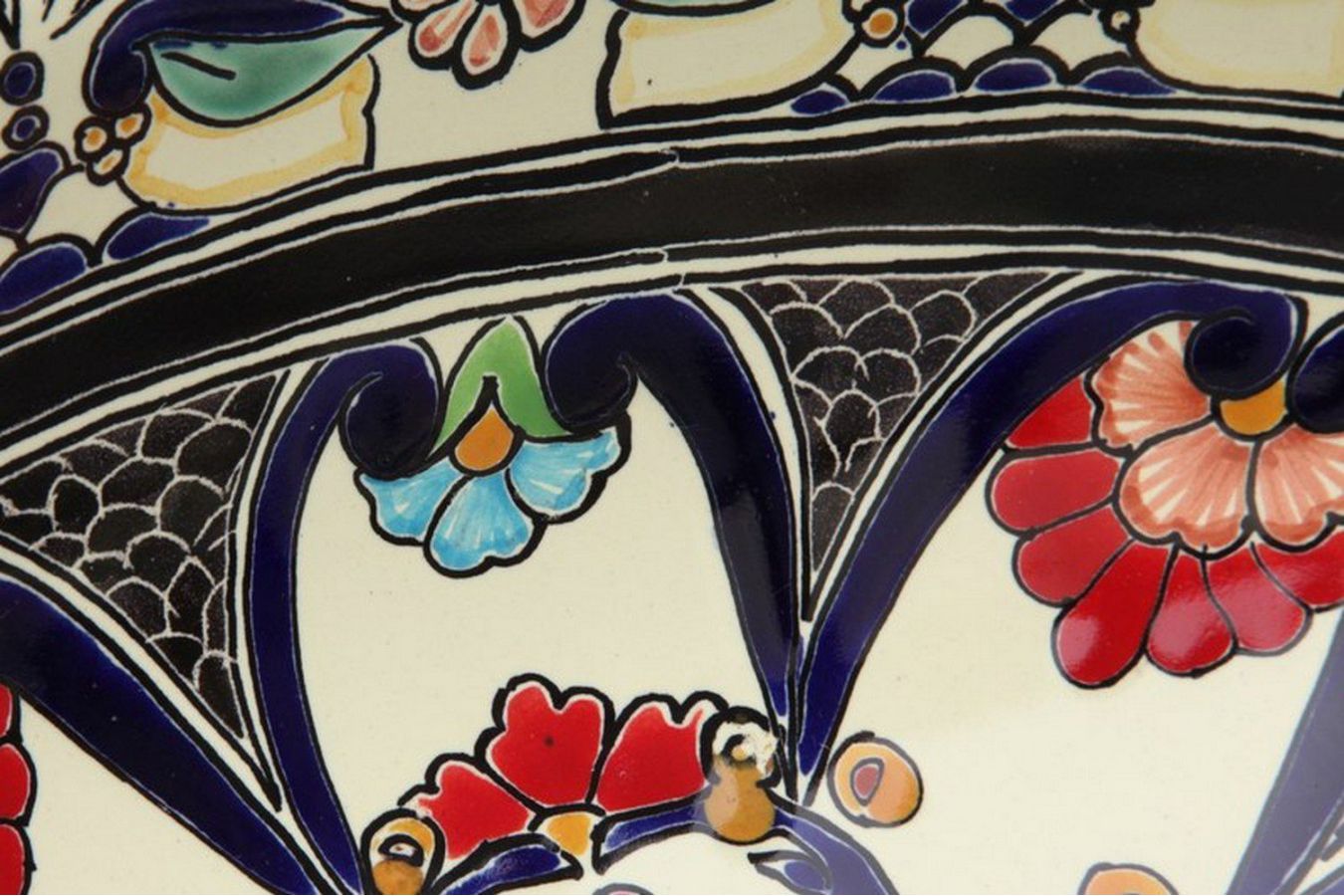 Керамичен умивалник за плот, произведен в Мексико. Богато декорирана и ръчно рисувана мексиканска мивка. Умивалникът е остъклен, което го прави устойчив на надраскване и протриване на шарката.