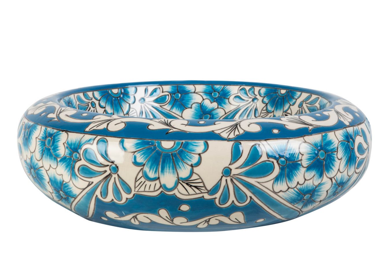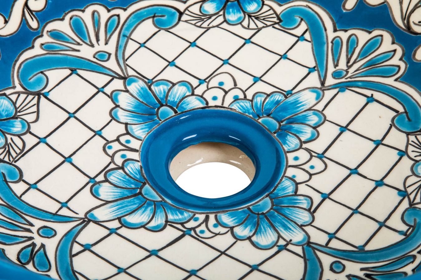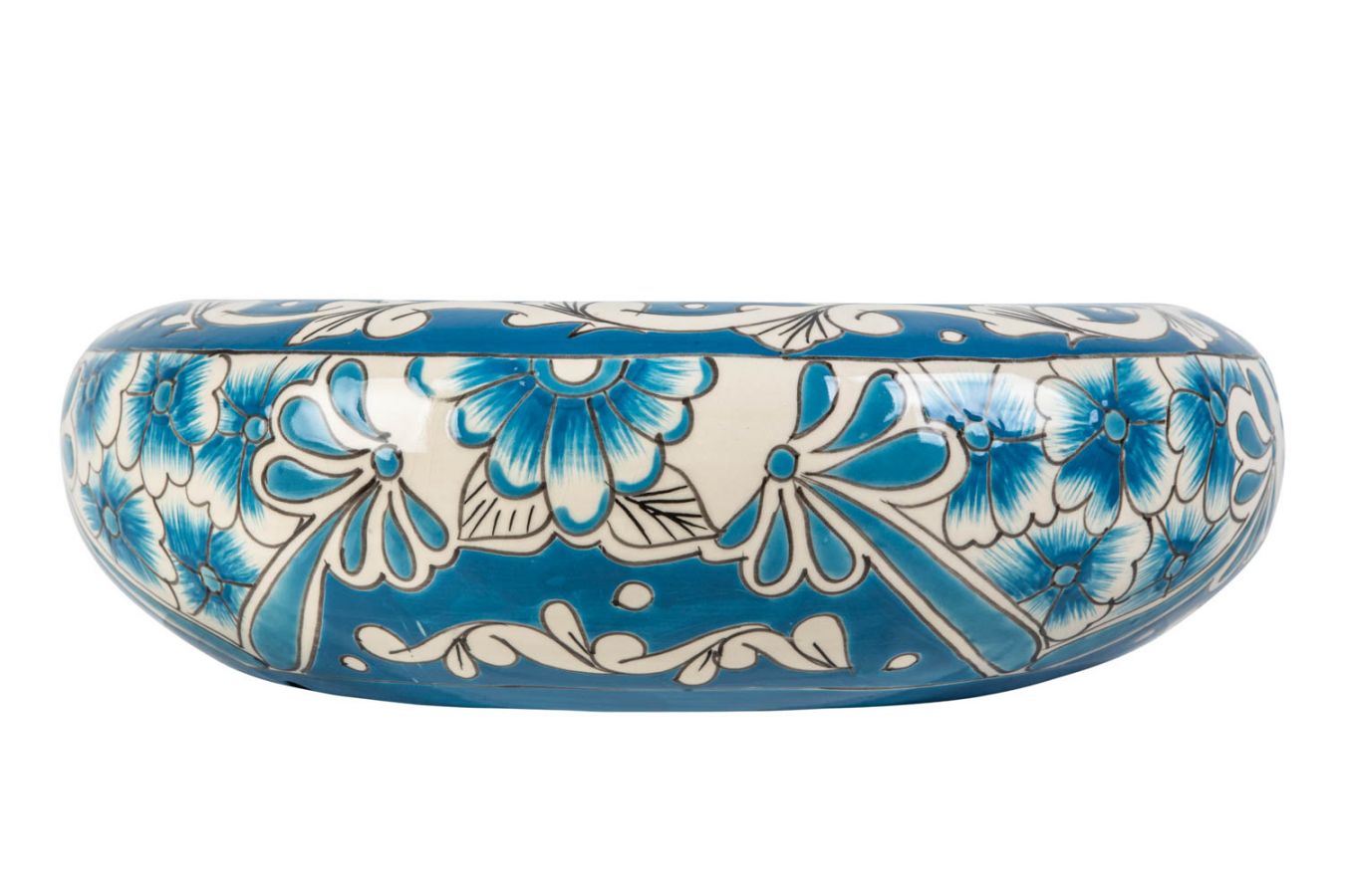 Керамичен умивалник за плот, произведен в Мексико. Богато декорирана и ръчно рисувана мексиканска мивка. Умивалникът е остъклен, което го прави устойчив на надраскване и протриване на шарката.