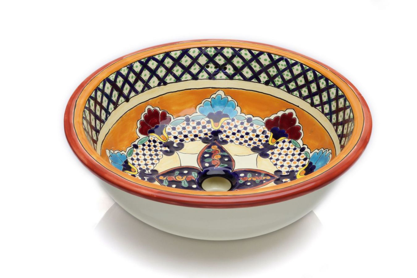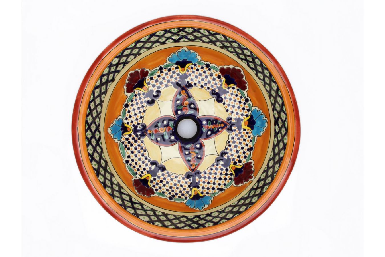 Керамичният умивалник е изработен и изрисуван от мексикански майстори.
