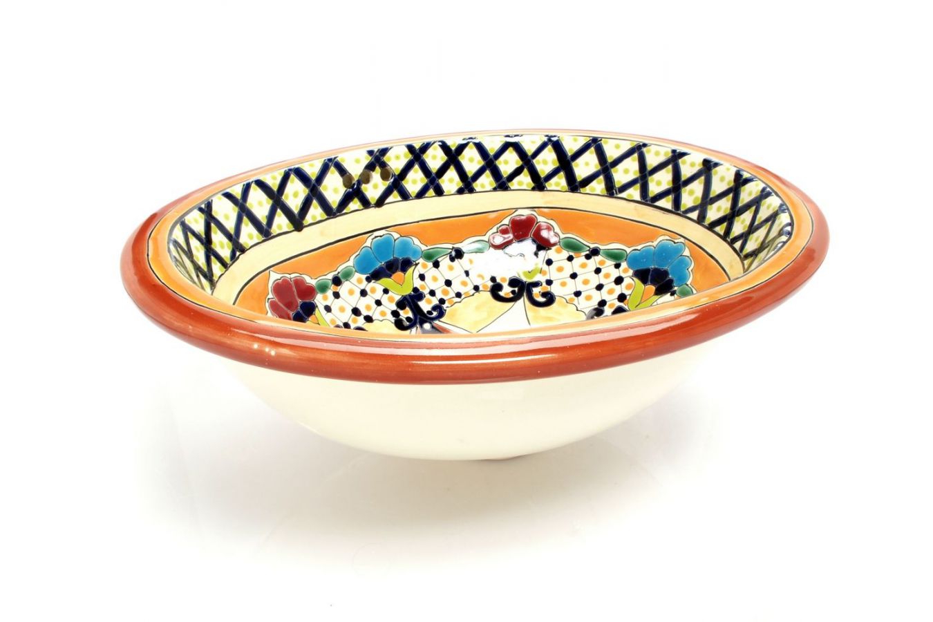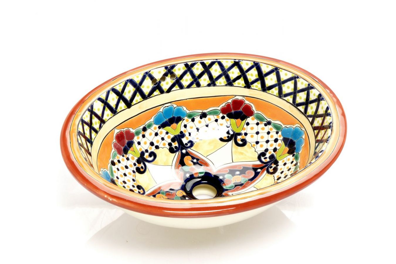 • Керамичен умивалник, ръчно декориран от художника в Мексико.