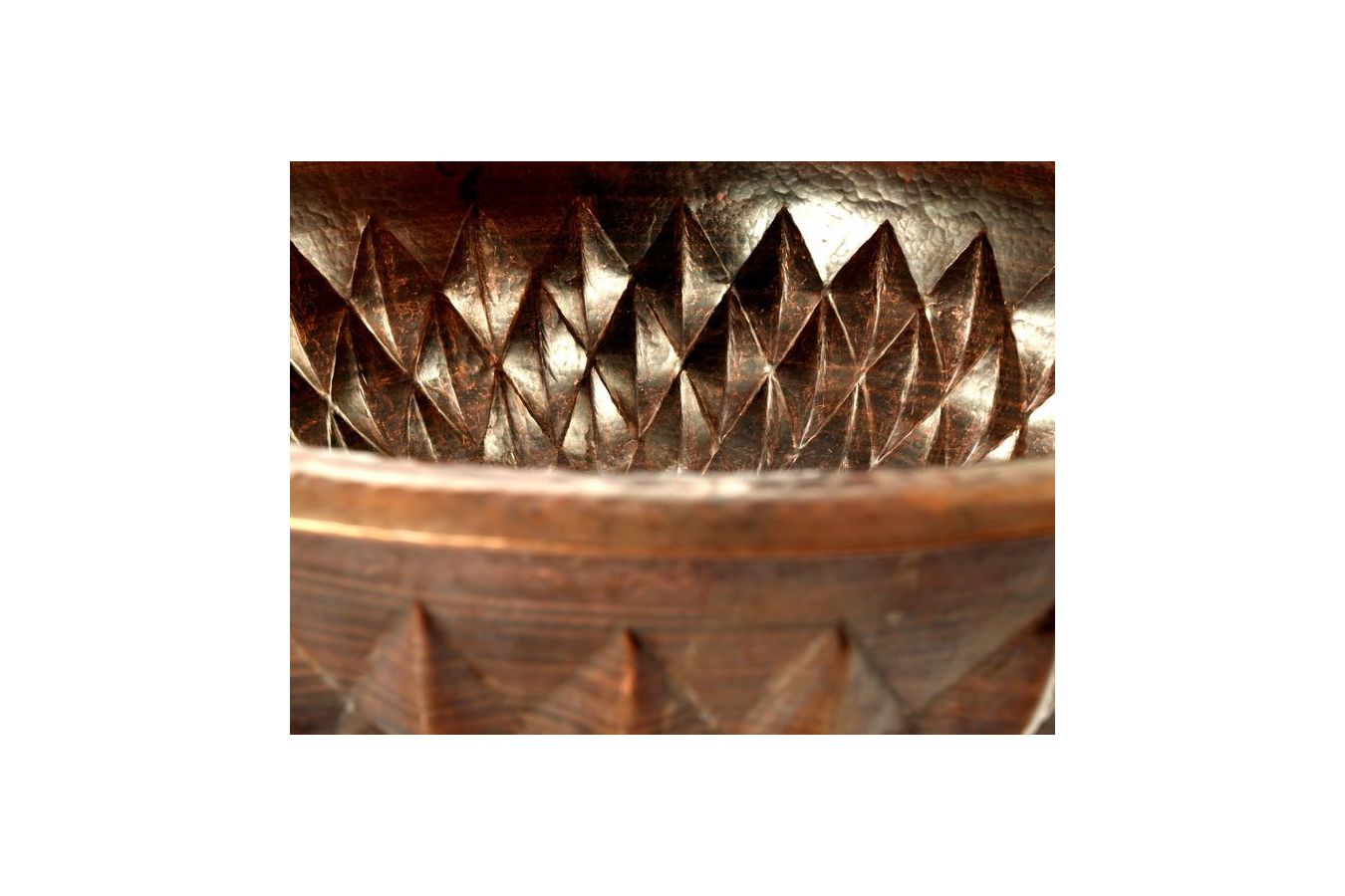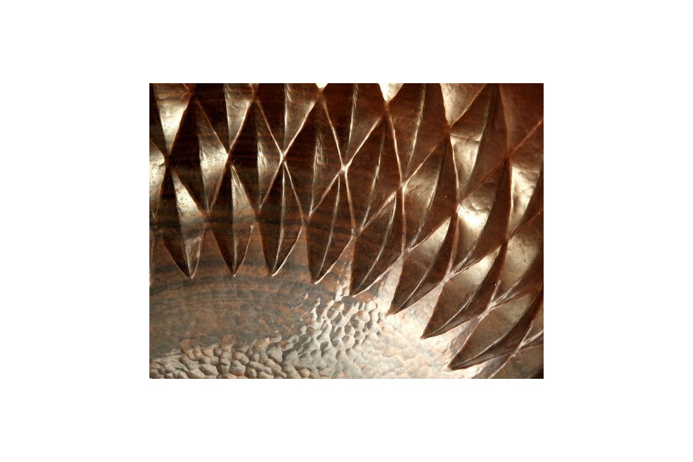 Вграждащ се умивалник от мед. Мивката произхожда от Мексико, където е ръчно изкована от занаятчия. Мивката не е подложена на корозия по време на употреба.