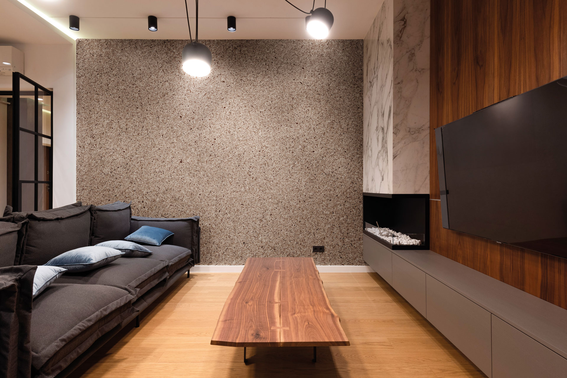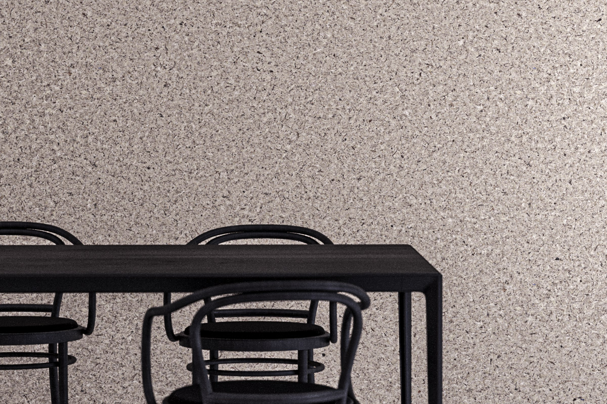 Нежният сив мъх е рециклиран материал, който получава нов живот чрез ъпсайклинг. Той създава приятна и естествена атмосфера, като същевременно подобрява вътрешния климат – регулира влажността и оказва положително влияние върху качеството на въздуха.