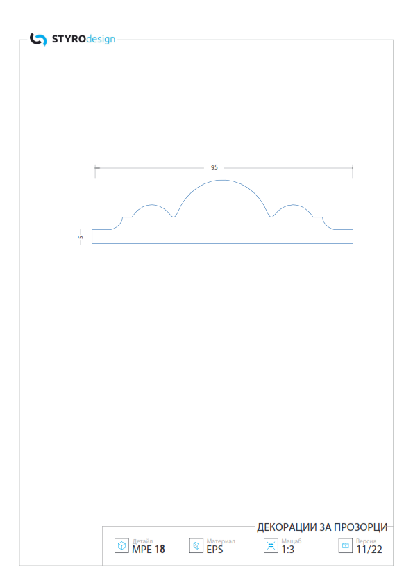 Сечение Чертеж на детайла, представящ сечението на избрания профил.