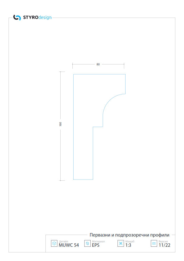 Сечение Чертеж на детайла, представящ сечението на избрания профил.