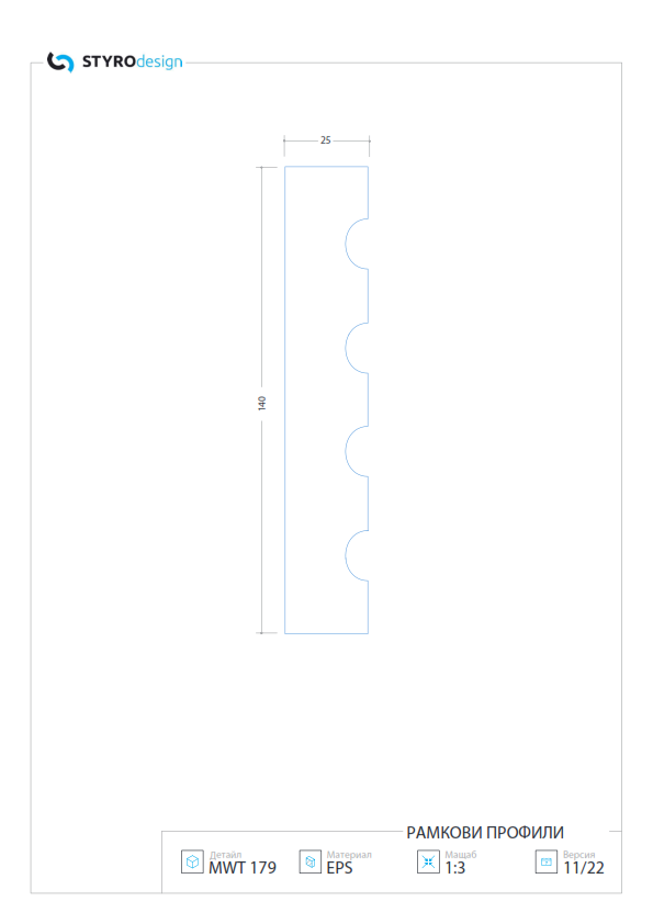 Сечение Чертеж на детайла, представящ сечението на избрания профил.