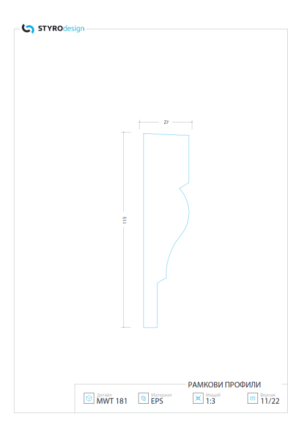 Сечение Чертеж на детайла, представящ сечението на избрания профил.
