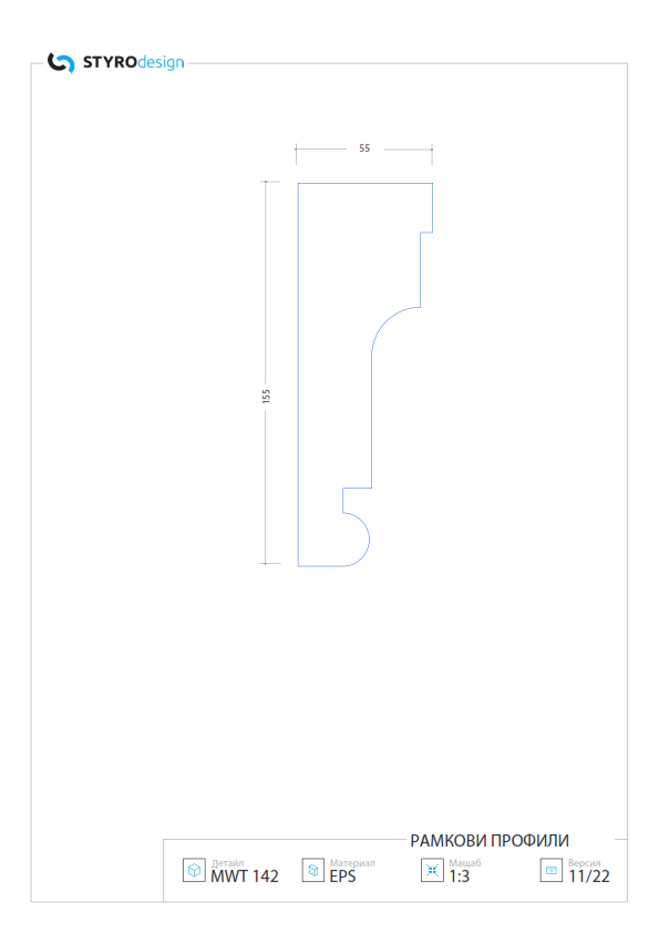 Сечение Чертеж на детайла, представящ сечението на избрания профил.