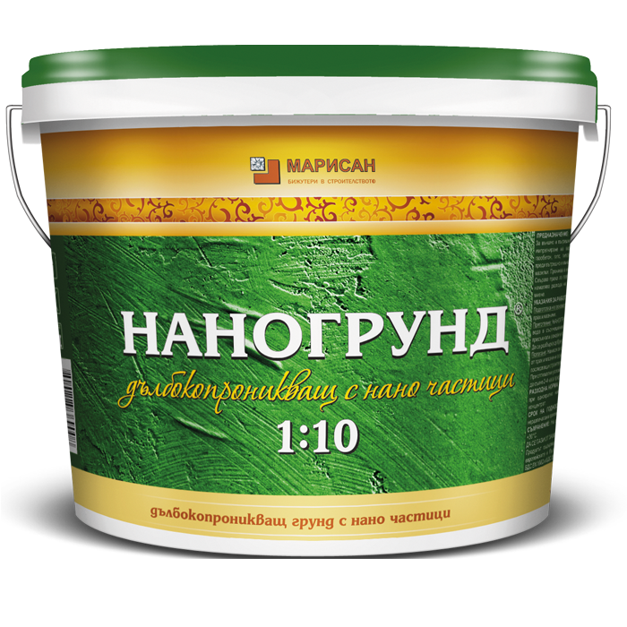 НАНОГРУНД® е концентриран грунд с нано частици и голяма дълбочина на проникване, който запечатва оптимално всички видове фино порести повърхности, като варо-циментови и варопясъчни мазилки, циментово-влакнести плоскости, плочи от гипс и гипскартон, варовик, тухли, бетон, както и леко изсоляващи и песъчливи, но здрави основи. Почти без мирис, което го прави много подходящ за работа в обитаеми помещения и складове за хранителни изделия. За вътрешно и външно приложение.