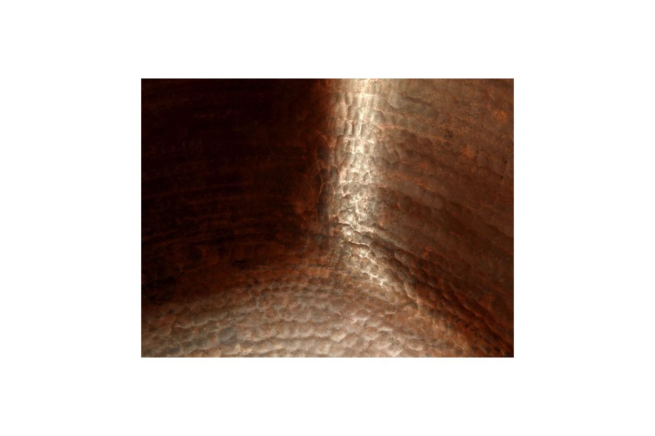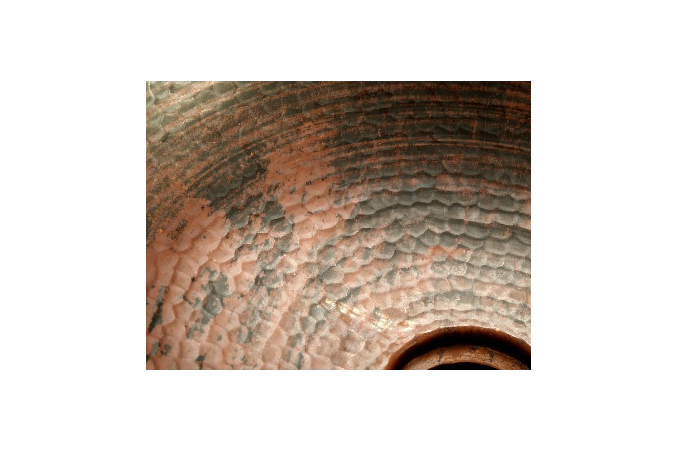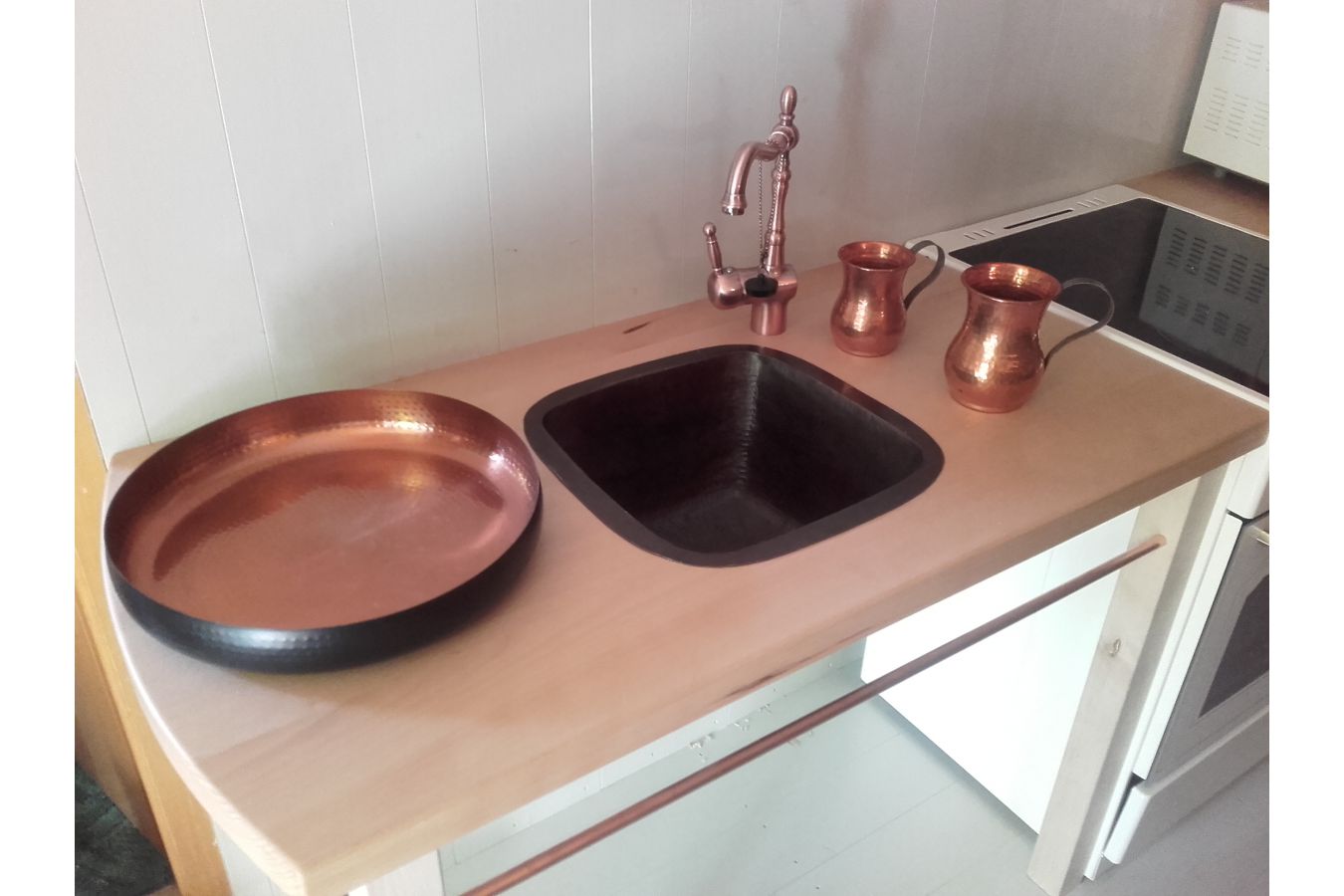 Вграждащ се умивалник от мед. Мивката произхожда от Мексико, където е ръчно изкована от занаятчия. Мивката не е подложена на корозия по време на употреба.