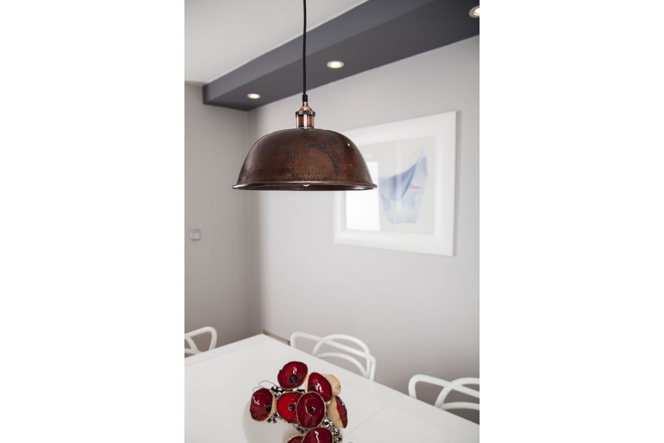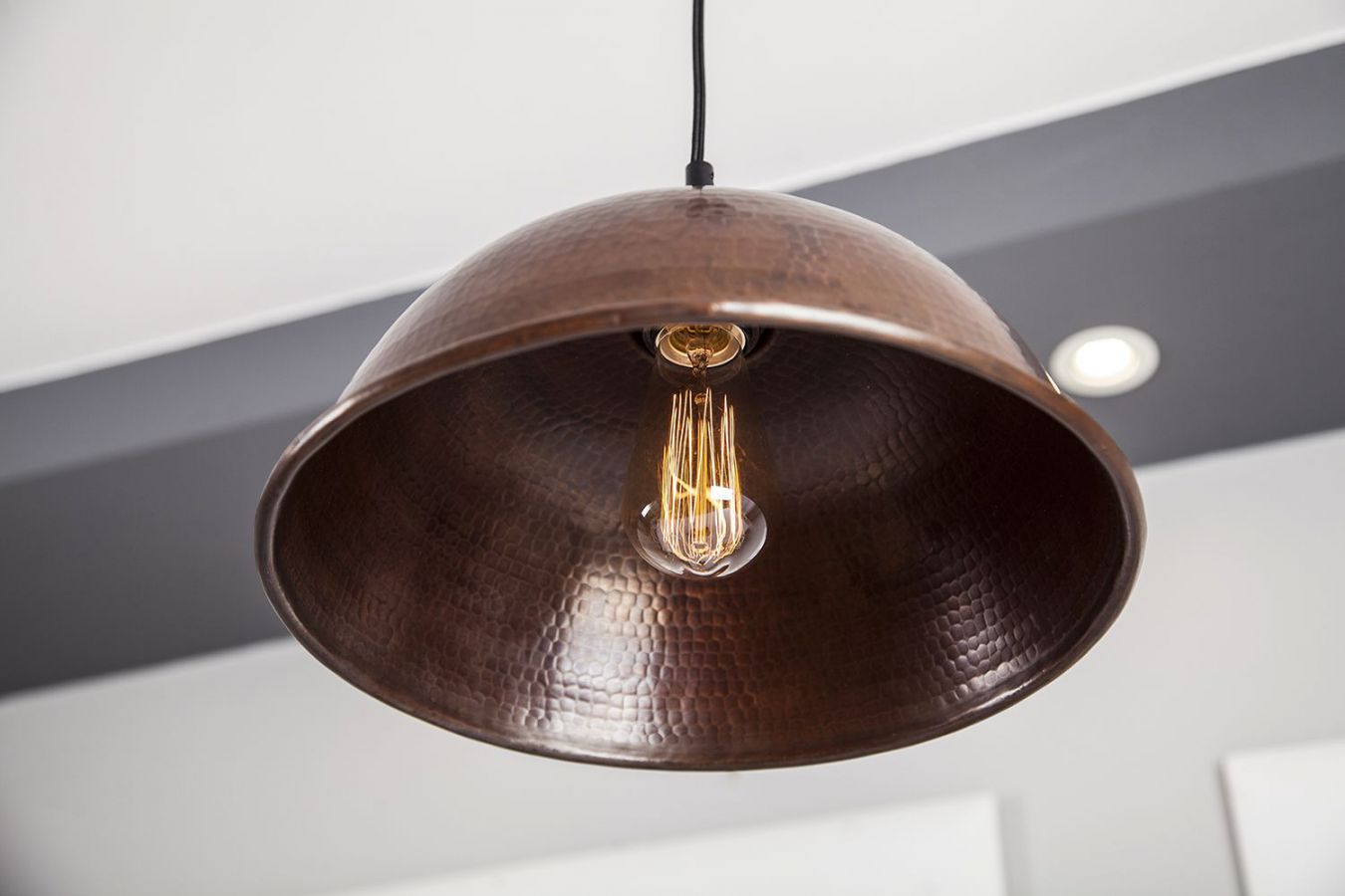 Ръчно кована медна лампа от Мексико. Всяка лампа е уникална и изработена с прецизност. Медта е защитена и не корозира.