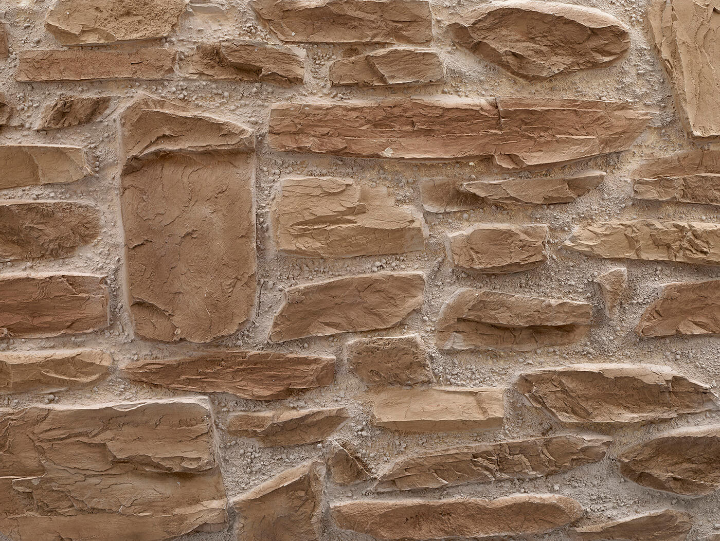 Дизайнът на този декоративен панел имитира традиционния метод на преплитане на плоски камъни с големи каменни блокове за изграждане на стени.