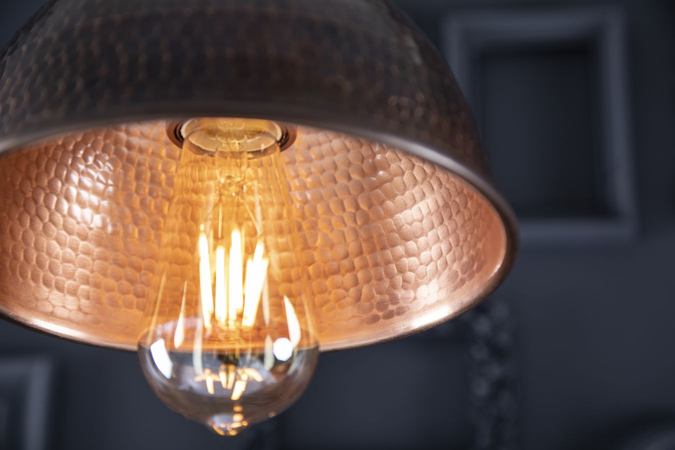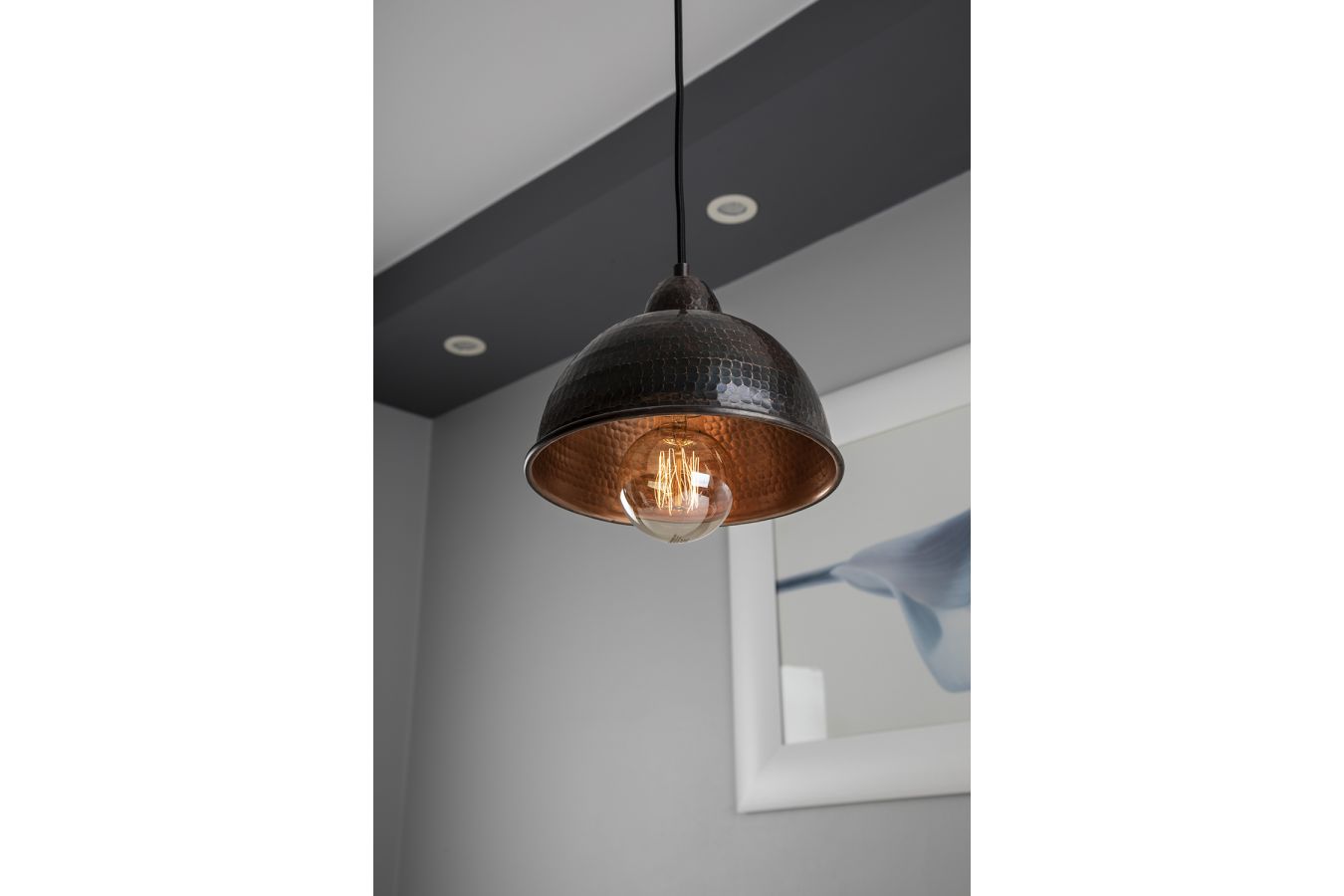 Ръчно кована медна лампа от Мексико. Всяка лампа е уникална и изработена с прецизност. Медта е защитена и не корозира.