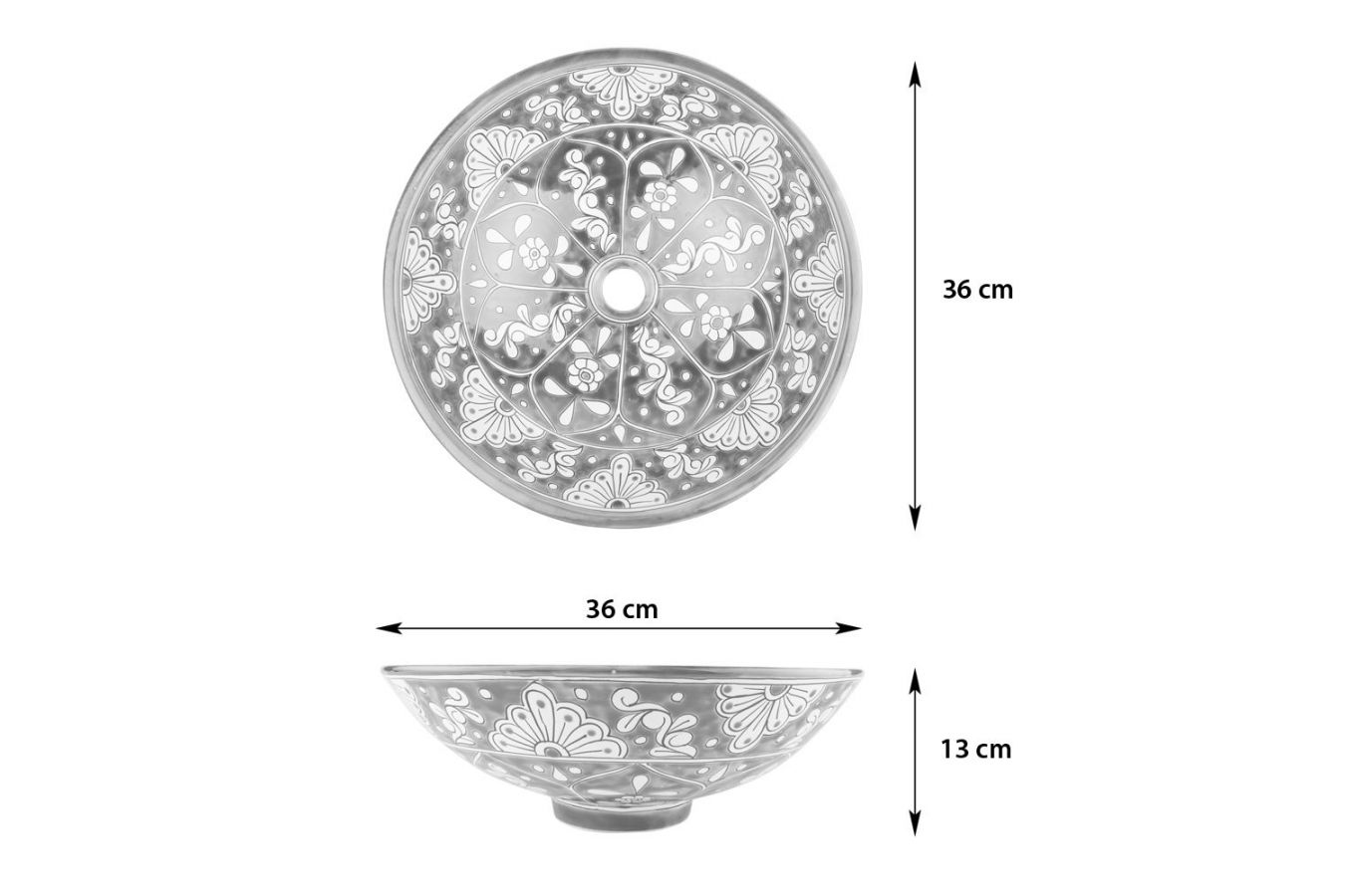 Керамичен умивалник за плот, произведен в Мексико. Богато декорирана и ръчно рисувана мексиканска мивка. Умивалникът е остъклен, което го прави устойчив на надраскване и протриване на шарката.