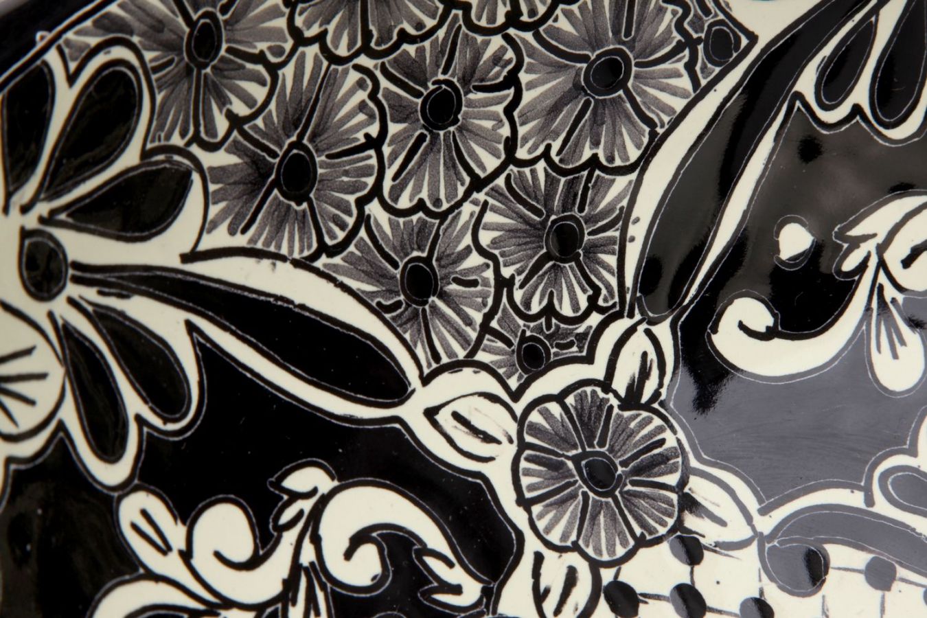 Керамичен умивалник за плот, произведен в Мексико. Богато декорирана и ръчно рисувана мексиканска мивка. Умивалникът е остъклен, което го прави устойчив на надраскване и протриване на шарката.