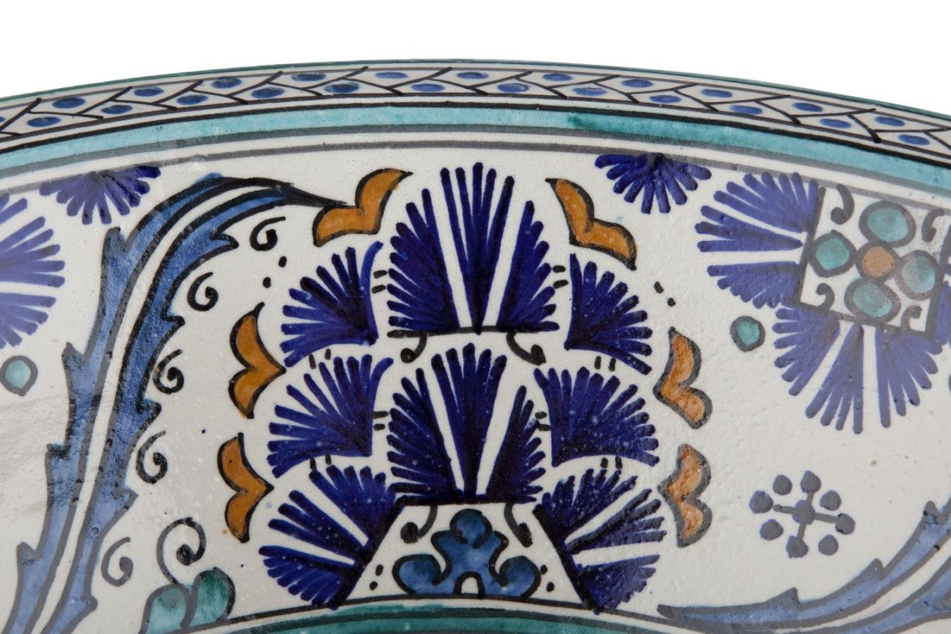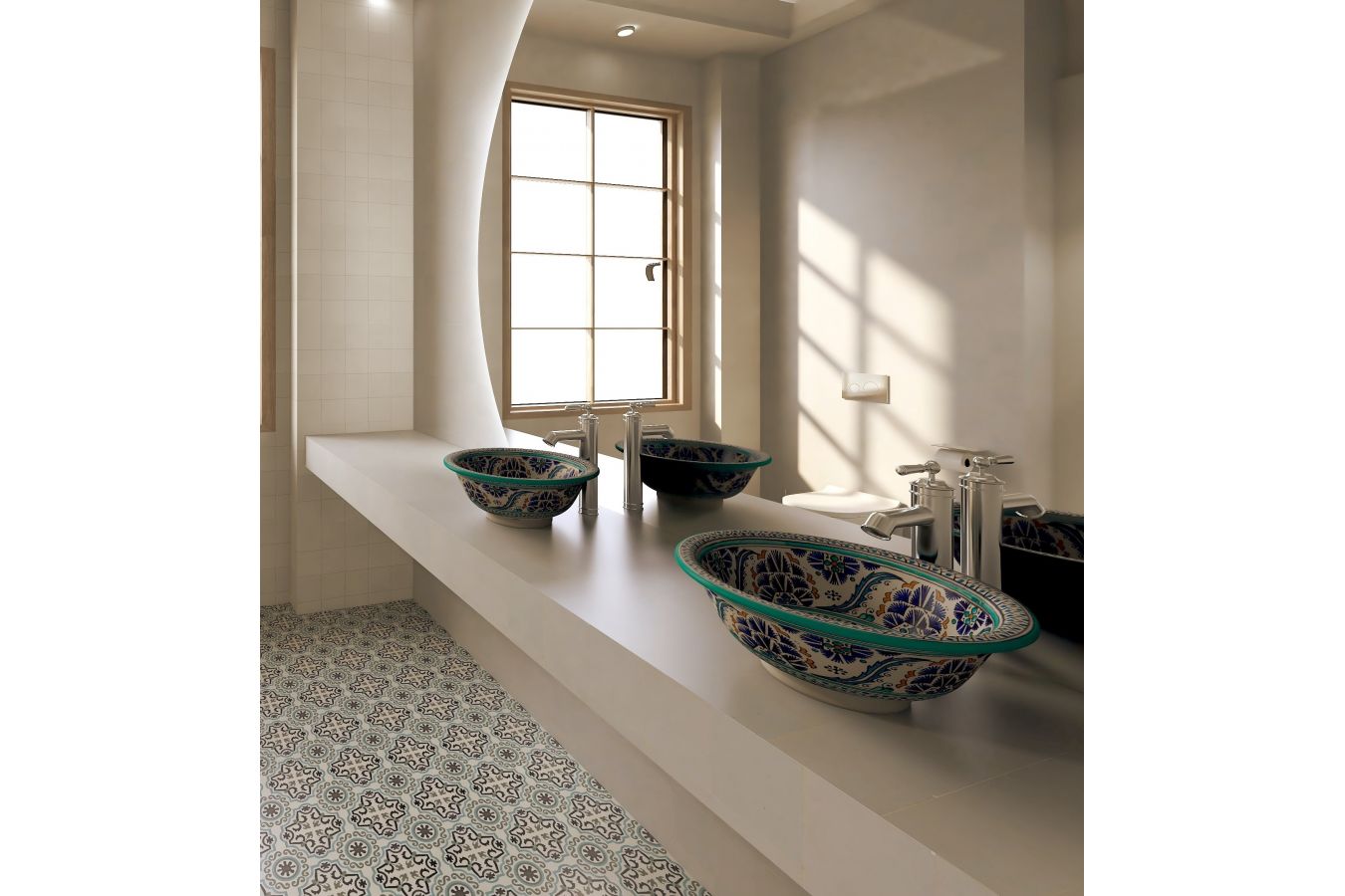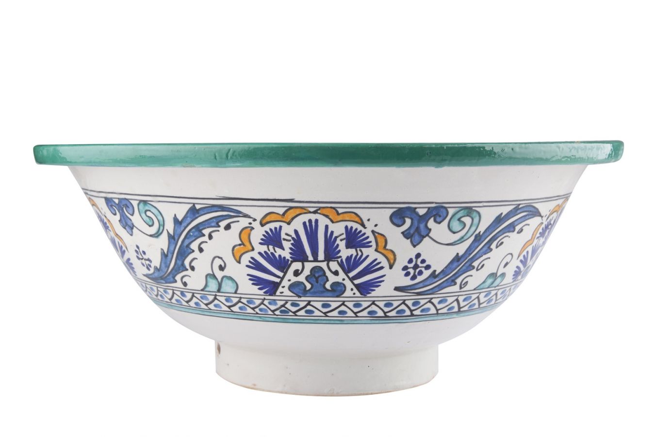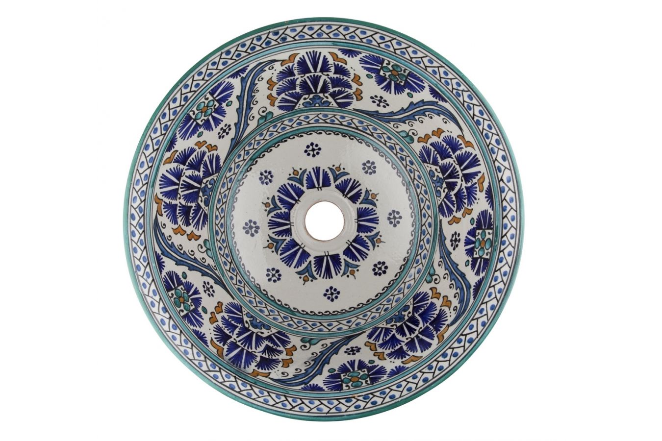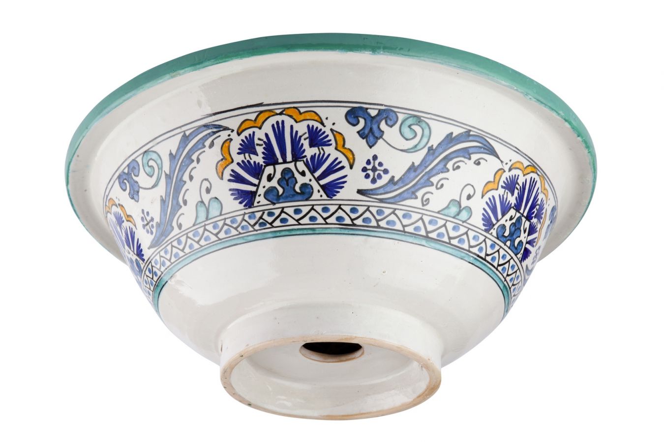 Ръчно рисувана турска мивка, произведена в района Кютахя, известен със своята керамика. Керамичният умивалник е остъклен, което го прави устойчив на надраскване и избледняване на цвета. Мивката ще се впише в интериора на всяка баня.