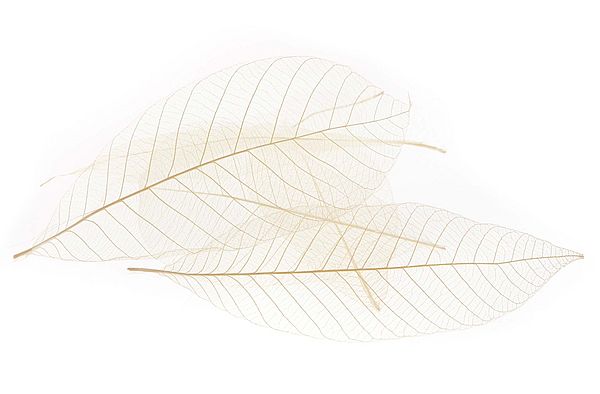 Листните скелети са всъщност листа на индийското каучуково дърво. При изсушаването си, те губят меката си част и остава само скелета им. Нежната и въздушна структура пресъздава усещане за лекота.