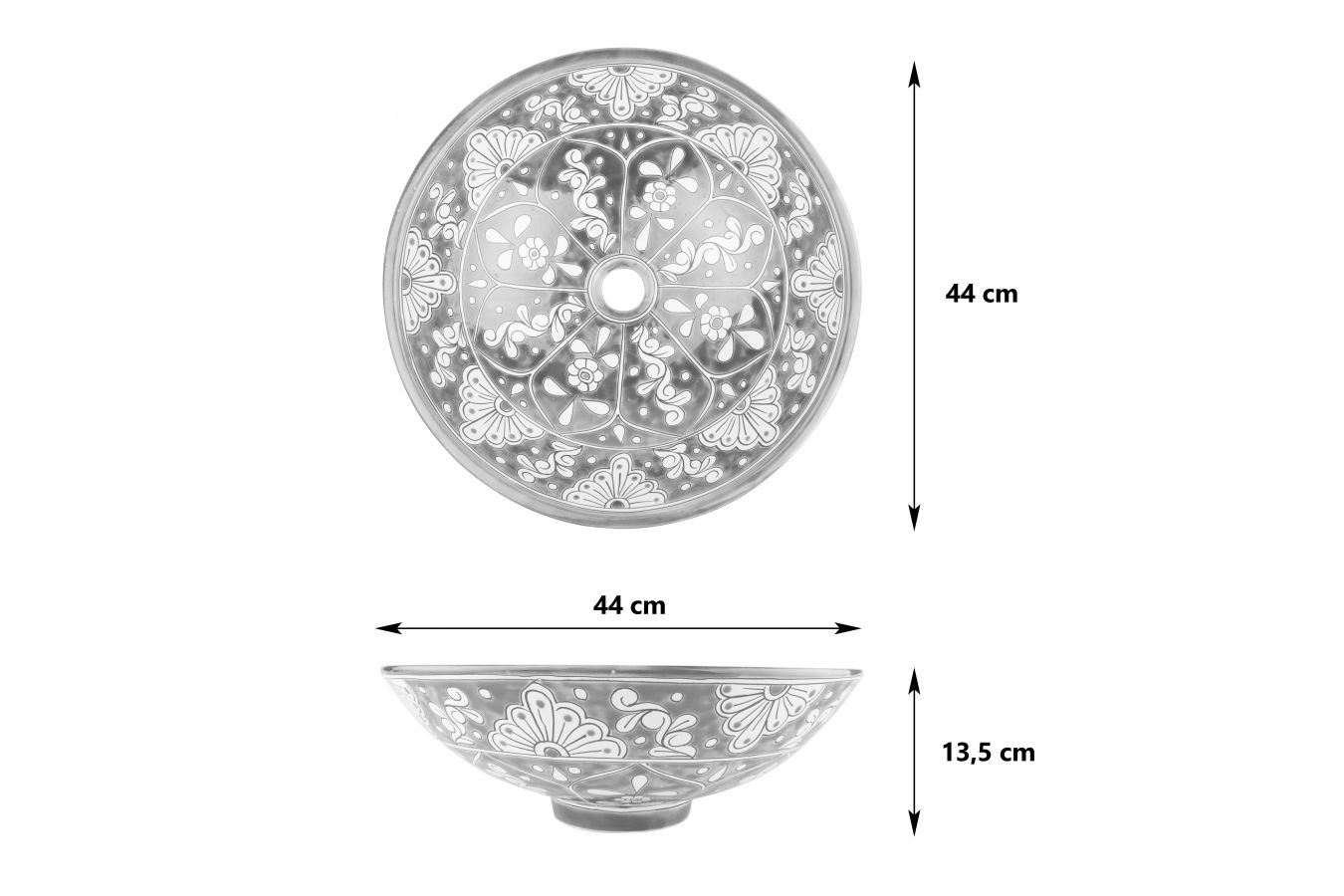 Керамичен умивалник за плот, произведен в Мексико. Богато декорирана и ръчно рисувана мексиканска мивка. Умивалникът е остъклен, което го прави устойчив на надраскване и протриване на шарката.