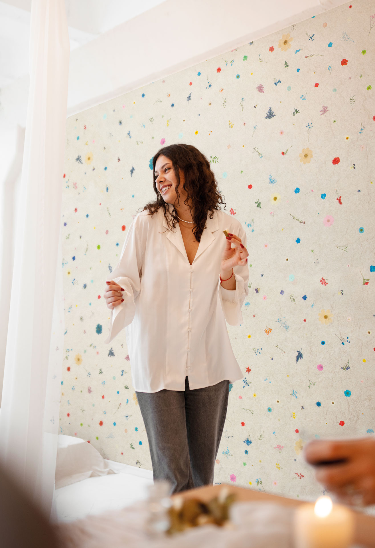 Истинска експлозия от цветове за вашите стени! Вдъхновена от природния феномен superbloom – когато цели пейзажи избухват в грандиозен спектакъл от цветове – тази повърхност събира в себе си яркото многообразие от цветя и листенца. Смели, деликатни, диви: почит към силата на природата, която носи чиста радост във всяко пространство!