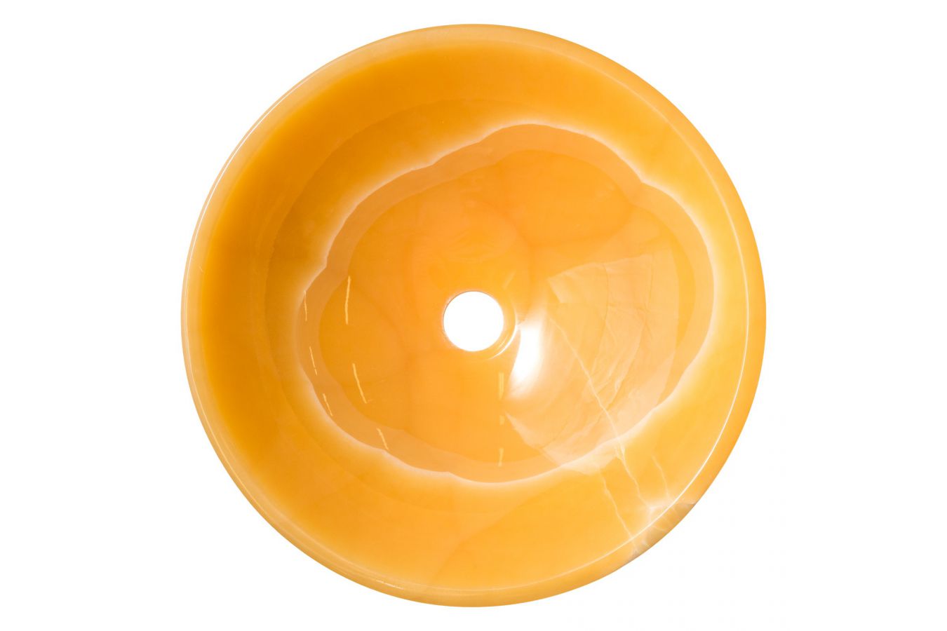 Умивалник за плот от оникс. Всеки умивалник е уникален и ръчно изработен с прецизност. Неравномерният цвят на оникса придава уникален цвят на мивките.