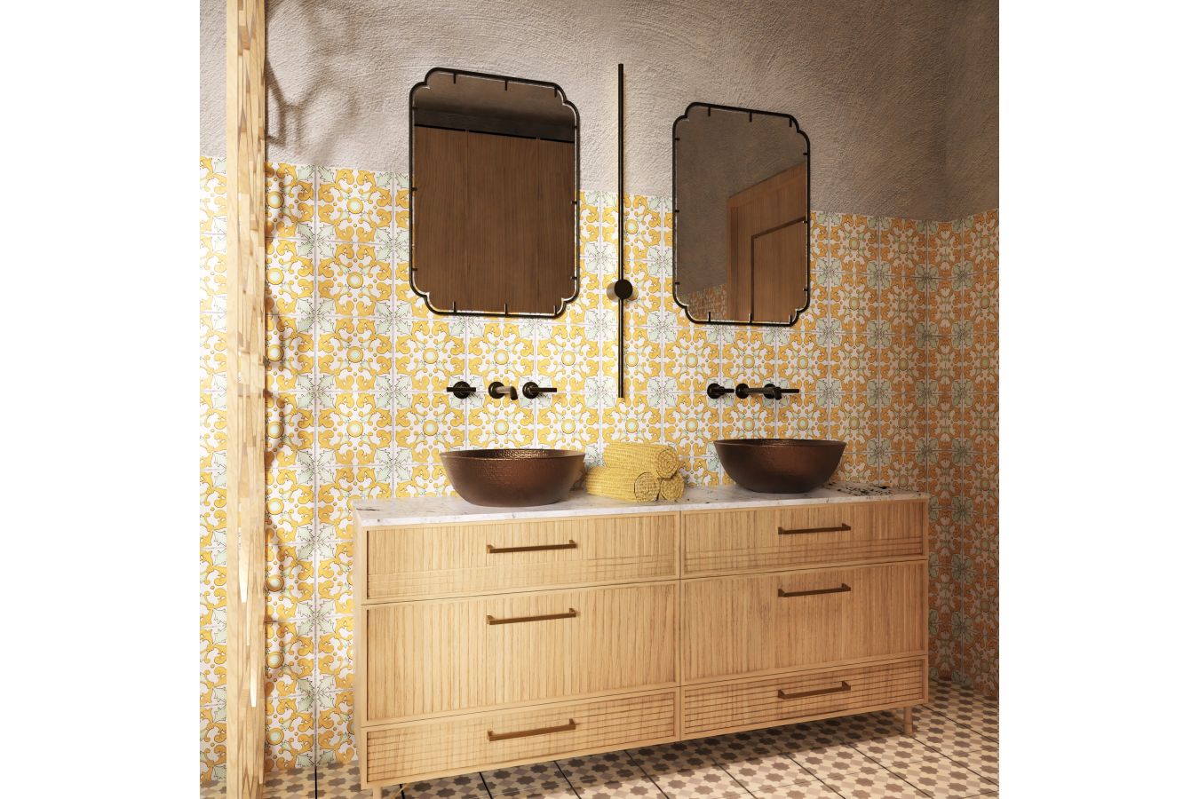 Медните мивки за плотове са ръчно изработени в Мексико. Характерен елемент е фината мащабна шарка, която е създадена в резултат на специална техника на коване с чук. Медните мивки са водоустойчиви и ще запазят оригиналния си цвят с години.