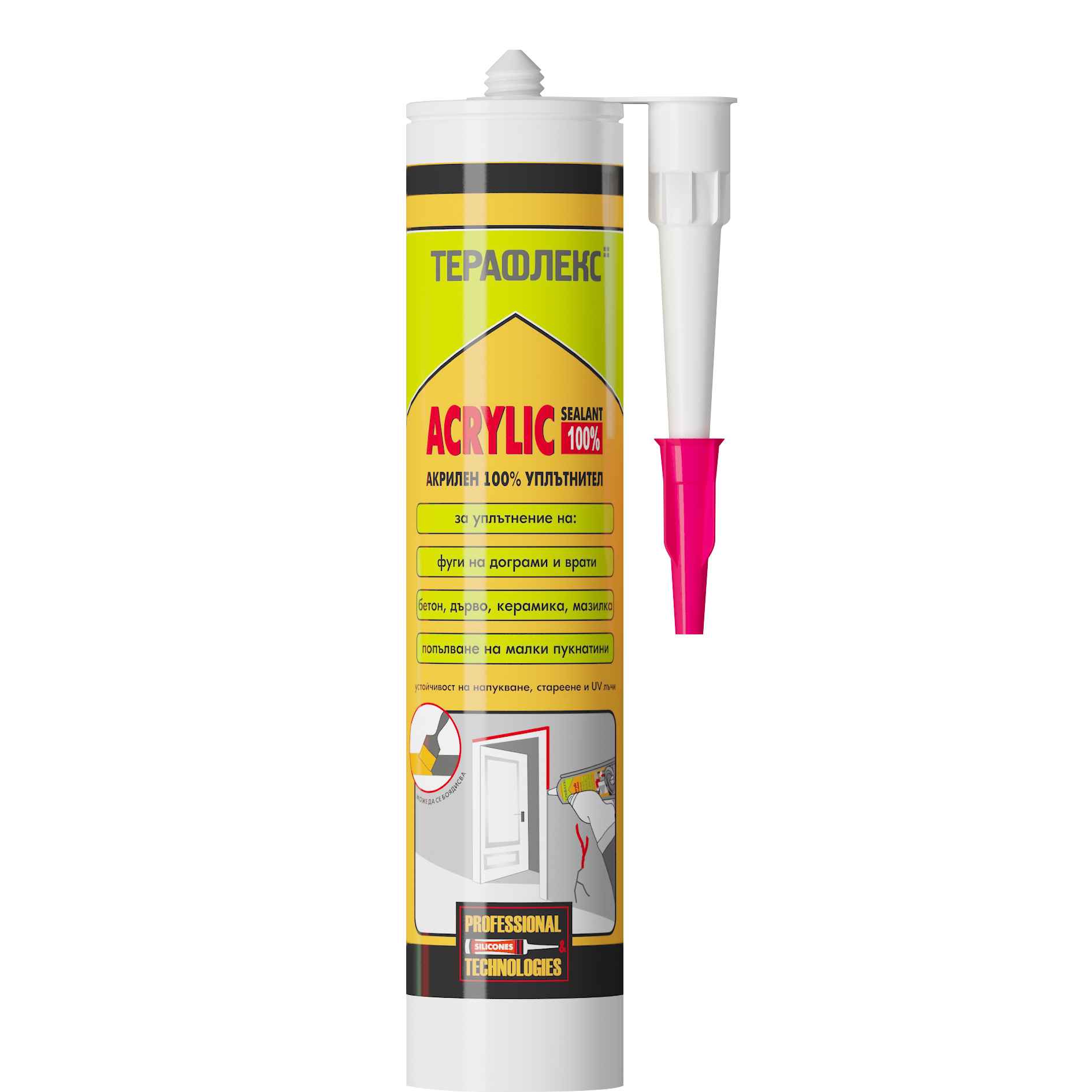 ТЕРАФЛЕКС® ACRYLIC е универсален акрилен уплътнител, предназначен за попълване и уплътняване на всички слабо подвижни и ненатоварени фуги между порести строителни материали (бетон, тухла, мазилки, естествен и изкуствен камък, гипсови плоскости, зидарии, дърво и др.) и за уплътняване на фуги между профили.