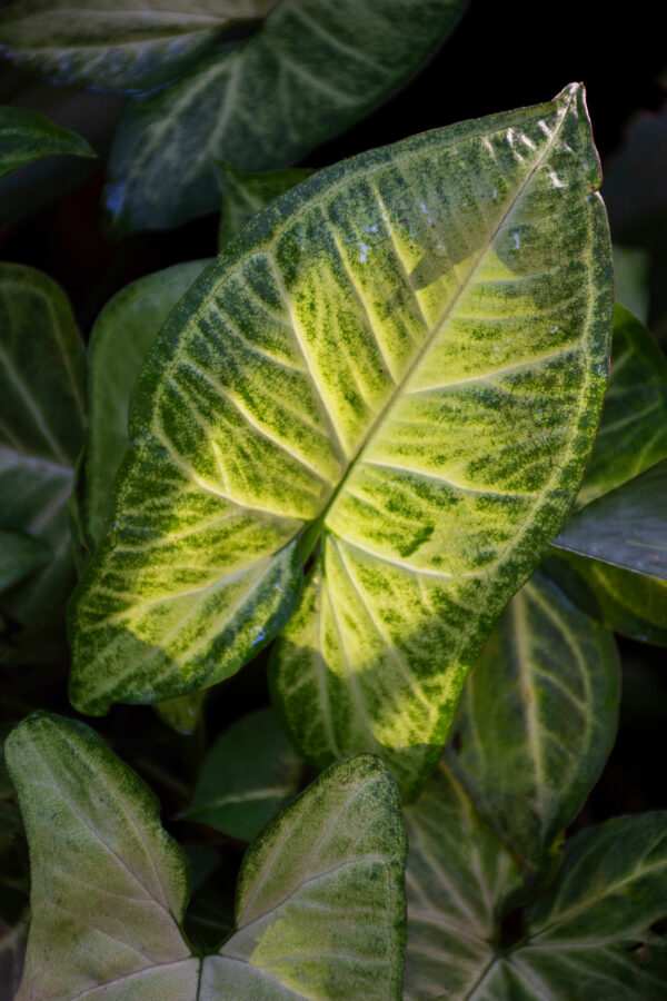 Каладиумът, известен още като „Сърцето на Исус“, расте в сенчестите и влажни почви на тропическите гори на Южна Америка. Неговите деликатни листа с впечатляващи цветови контрасти са истински шедьоври на природата.