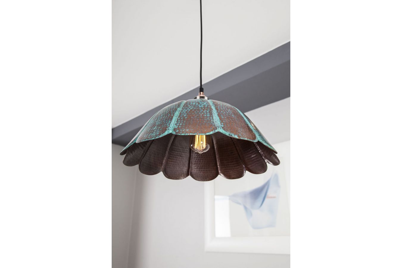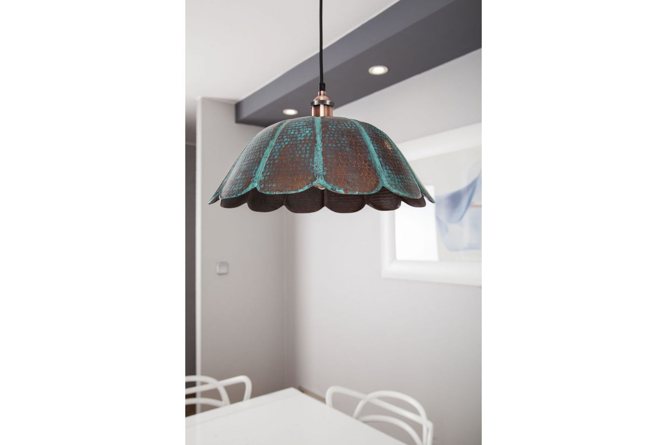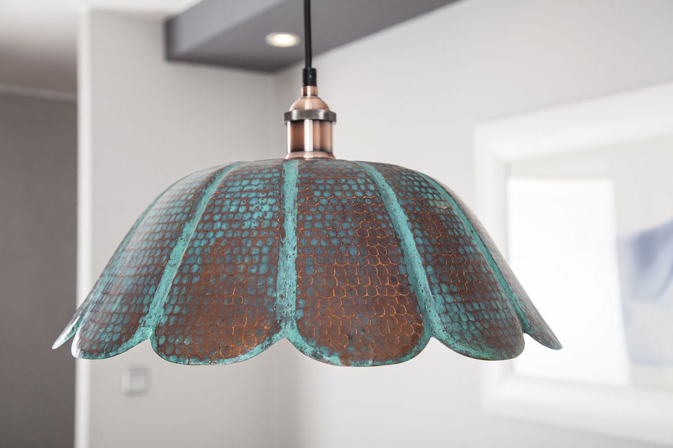 Абажурът на медния плафон е изработен от най-висококачествени материали и повърхността му е допълнително декорирана. Медната лампа е много издръжлива и практична вещ, а нанесеният слой патина удължава живота на продуктите.