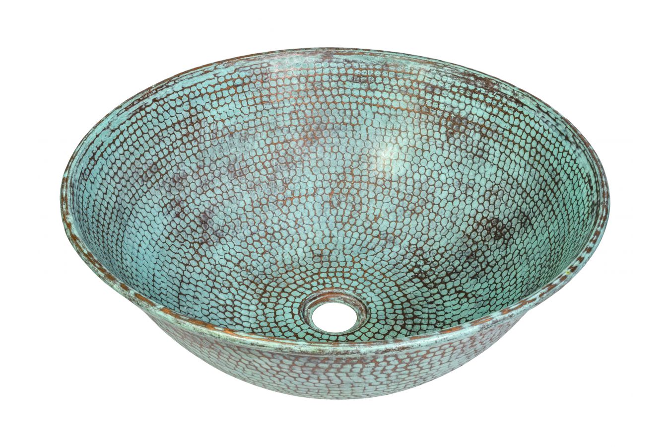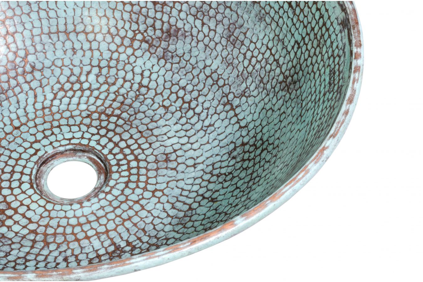 Умивалниците за плот от мед са ръчно изработени в Мексико. Характерен елемент е ситната мащабна шарка, която е резултат от специална техника на коване с чук. Медните умивалници са водоустойчиви и запазват оригиналния си цвят с години.