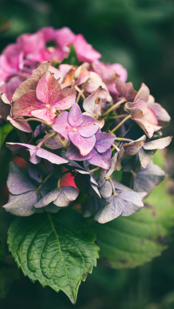 Тази цветна композиция обединява грацията и разнообразието на природата: хортензии и делфиниум внасят меки акценти, докато гипсофила и космос добавят ефирна лекота. Каладиум и хризантеми допълват картината със своята деликатна красота. Естественото ленено руно служи като нежна основа, създавайки хармонична повърхност.