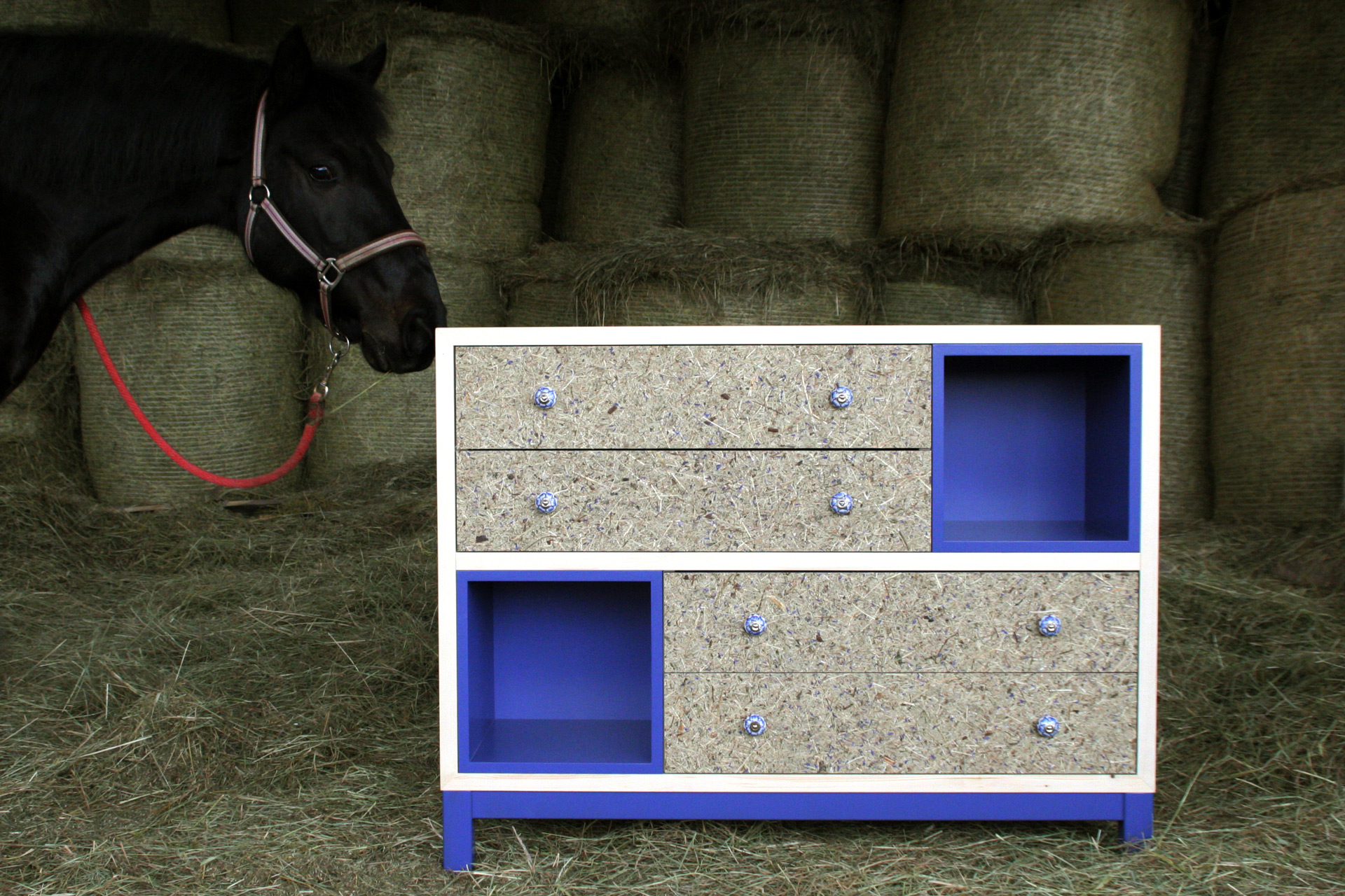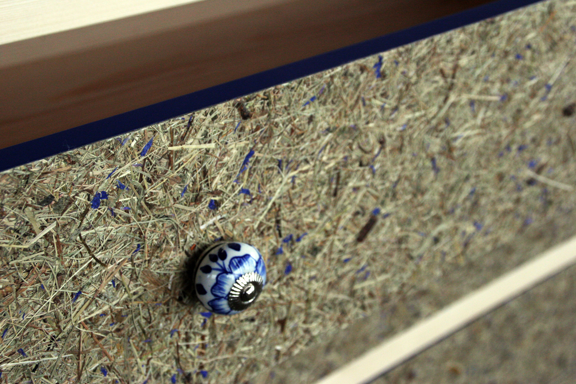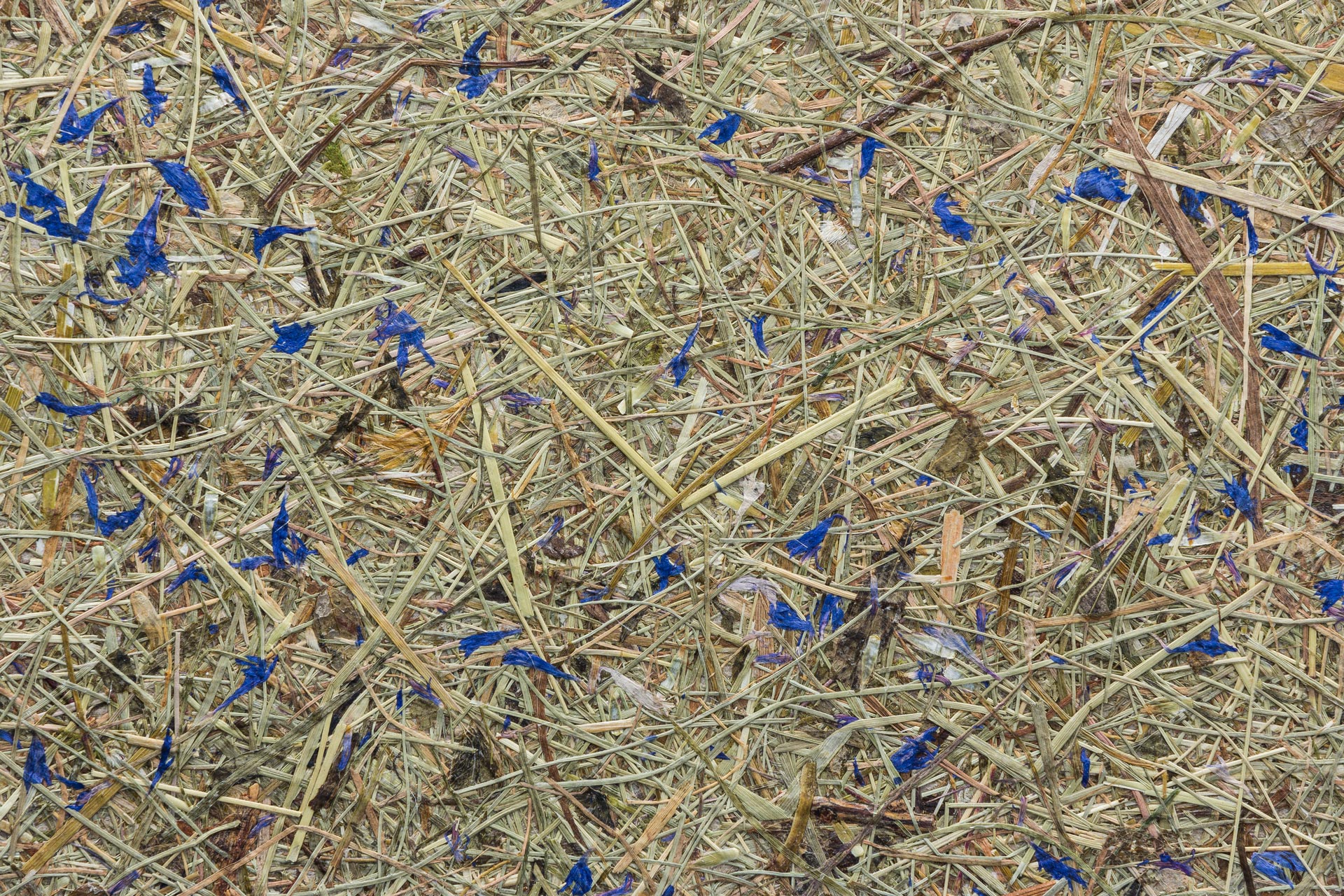 Нашето алпийско сено се добива регионално, обработва се устойчиво и достига до мануфактурата ни по къси транспортни маршрути. Богато на ценни билки, то създава успокояваща атмосфера и подпомага съхраняването на високопланинските ливади. Жизнените сини цветове от метличина добавят финален цветен акцент.