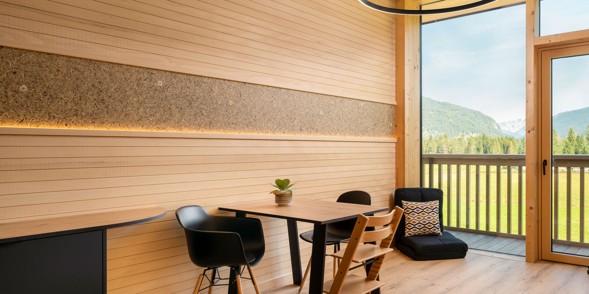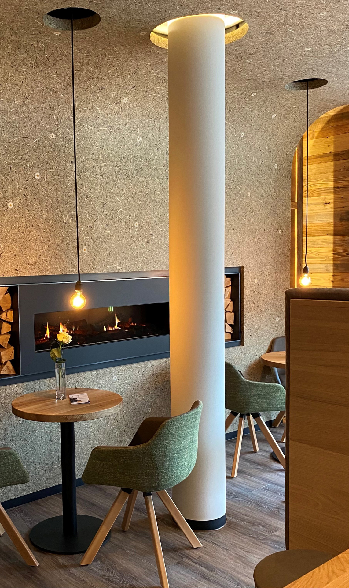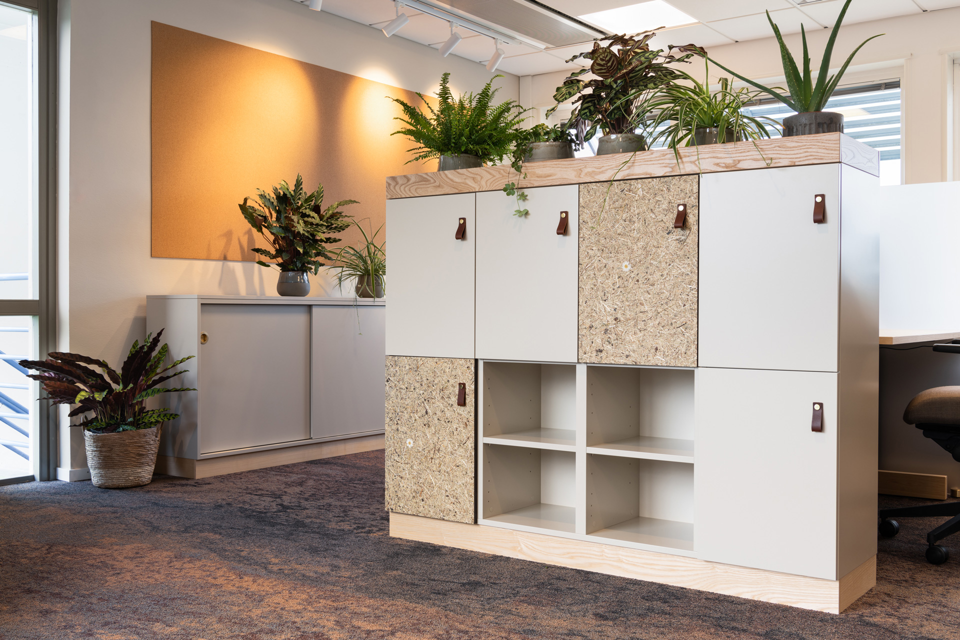 Като декор – монтаж на Organoid® естествени повърхности върху ленен филц в дървообработването: