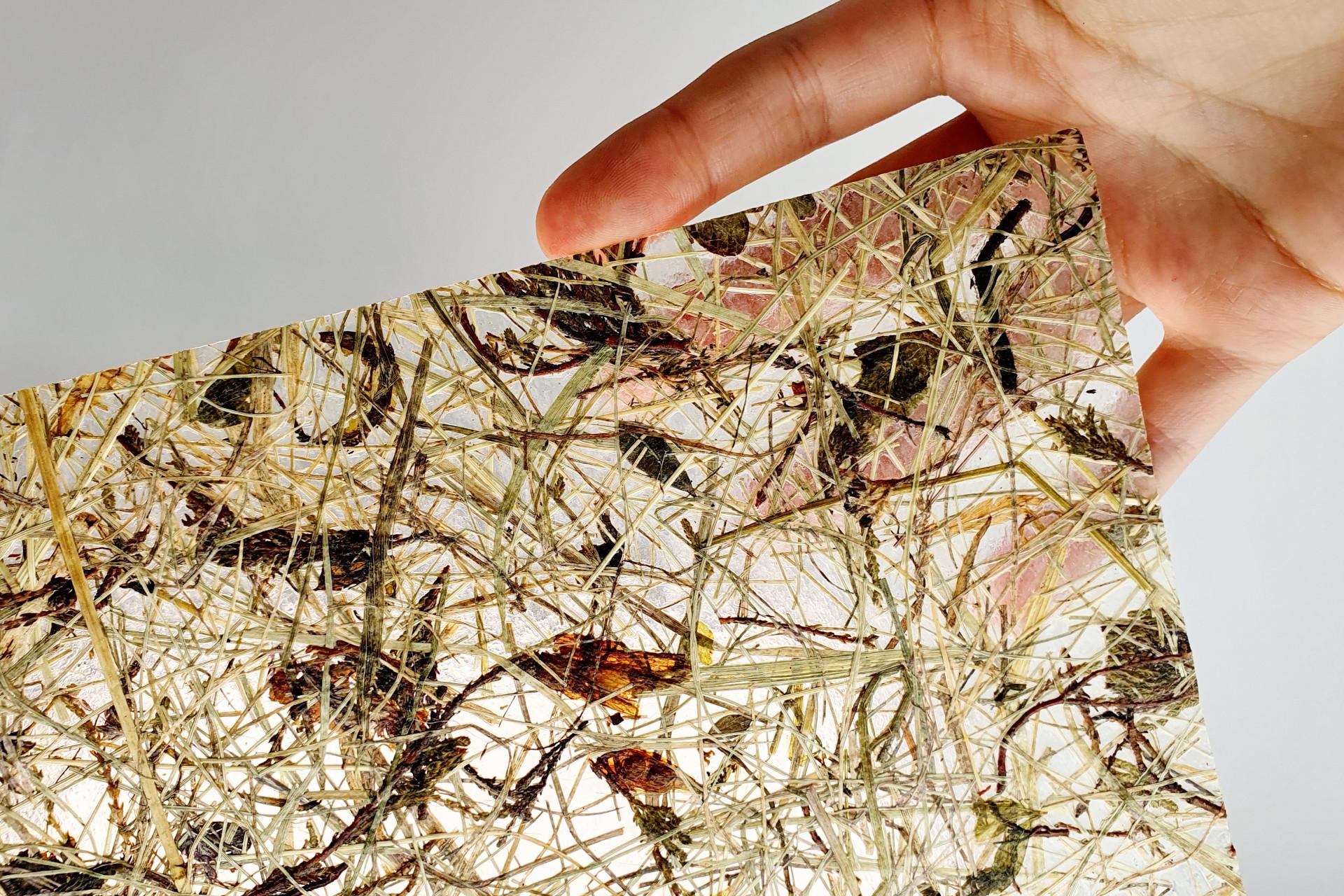 Листните скелети са всъщност листа на индийското каучуково дърво. При изсушаването си, те губят меката си част и остава само скелета им. Нежната и въздушна структура пресъздава усещане за лекота.