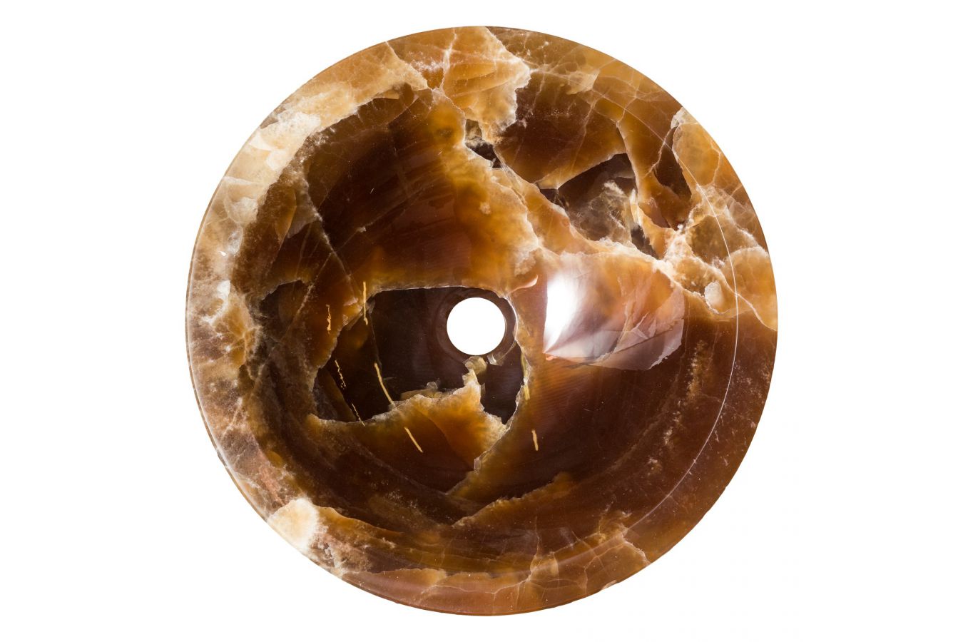 Умивалник за плот от оникс. Всеки умивалник е уникален и ръчно изработен с прецизност. Неравномерният цвят на оникса придава уникален цвят на мивките.