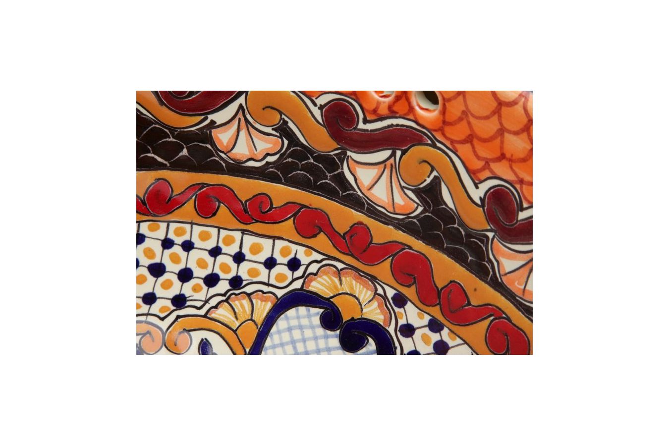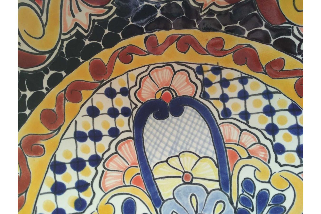 Керамичен умивалник за плот, произведен в Мексико. Богато декорирана и ръчно рисувана мексиканска мивка. Умивалникът е остъклен, което го прави устойчив на надраскване и протриване на шарката.