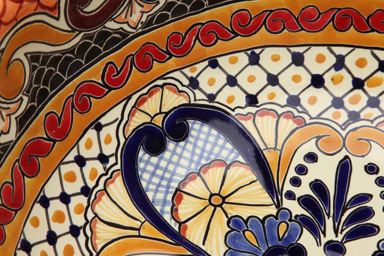 Керамичен умивалник за плот, произведен в Мексико. Богато декорирана и ръчно рисувана мексиканска мивка. Умивалникът е остъклен, което го прави устойчив на надраскване и протриване на шарката.