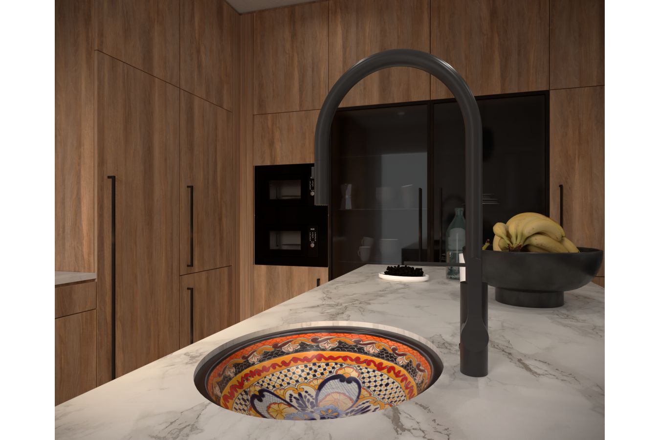 • Керамичен умивалник, ръчно декориран от художник от Мексико.