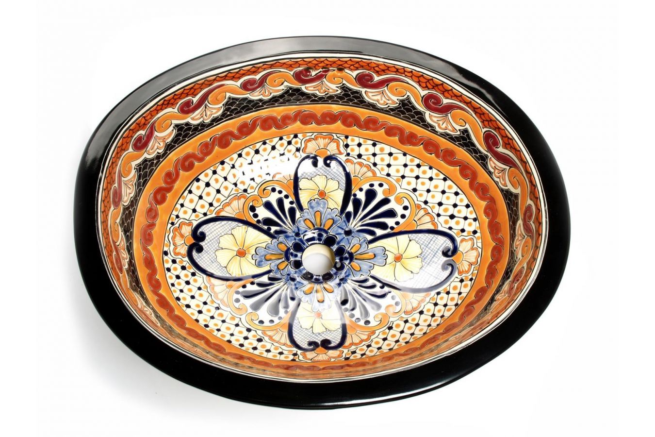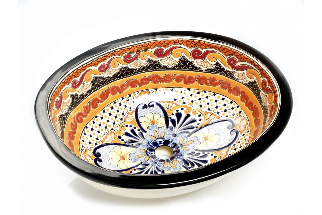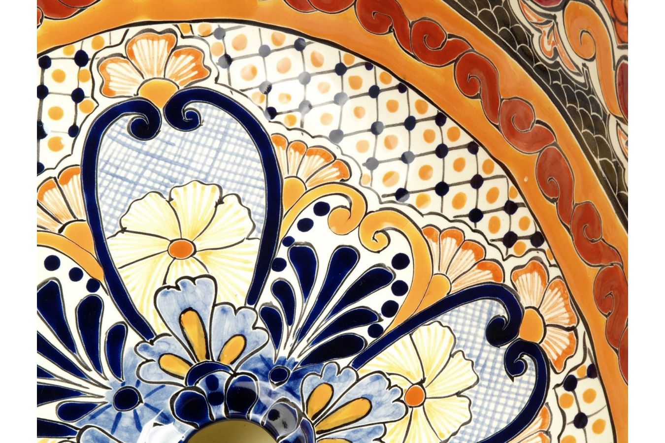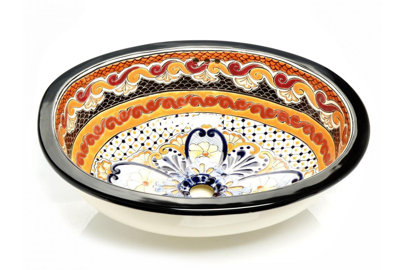 Керамичен мексикански умивалник, ръчно изработен от занаятчии. Мивката работи добре в аранжировка с всеки плот или шкаф.