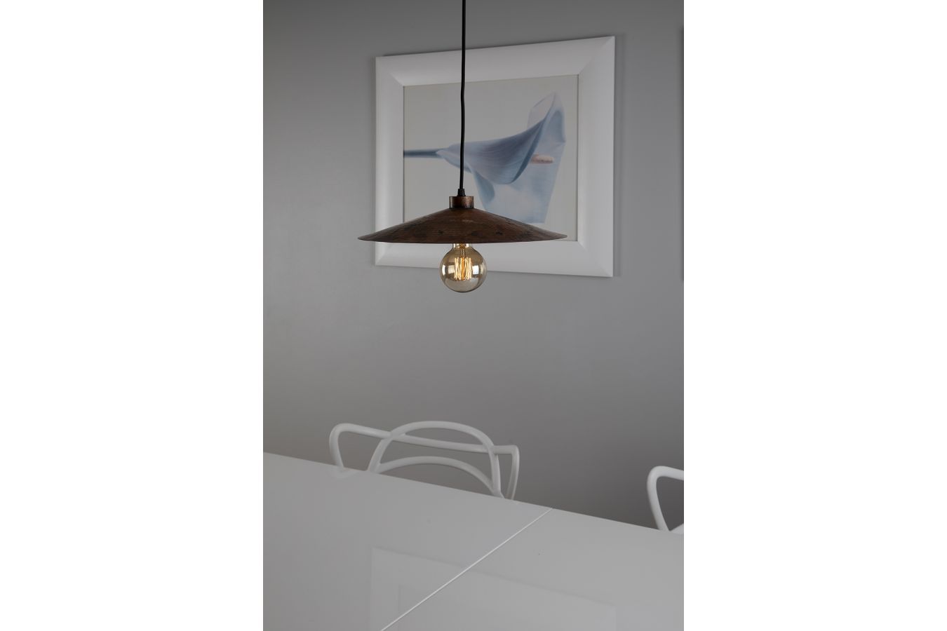 Абажурът на медния плафон е изработен от най-висококачествени материали и повърхността му е допълнително декорирана. Медната лампа е много издръжлива и практична вещ, а нанесеният слой патина удължава живота на продуктите.