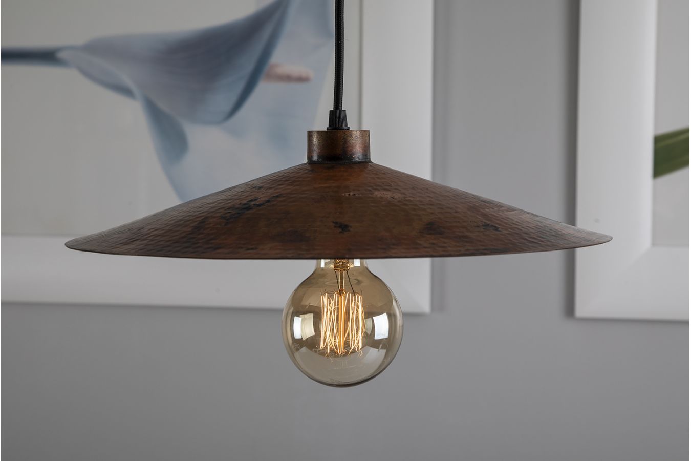 Ръчно кована медна лампа от Мексико. Всяка лампа е уникална и изработена с прецизност. Медта е защитена и не корозира.