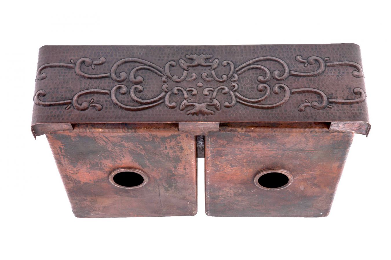 Медна мивка ръчна изработка в Мексико. Медта, като материал, е устойчива на повечето механични повреди и осигурява издръжлива форма на мивката. В допълнение, медната мивка няма да корозира по време на употреба.