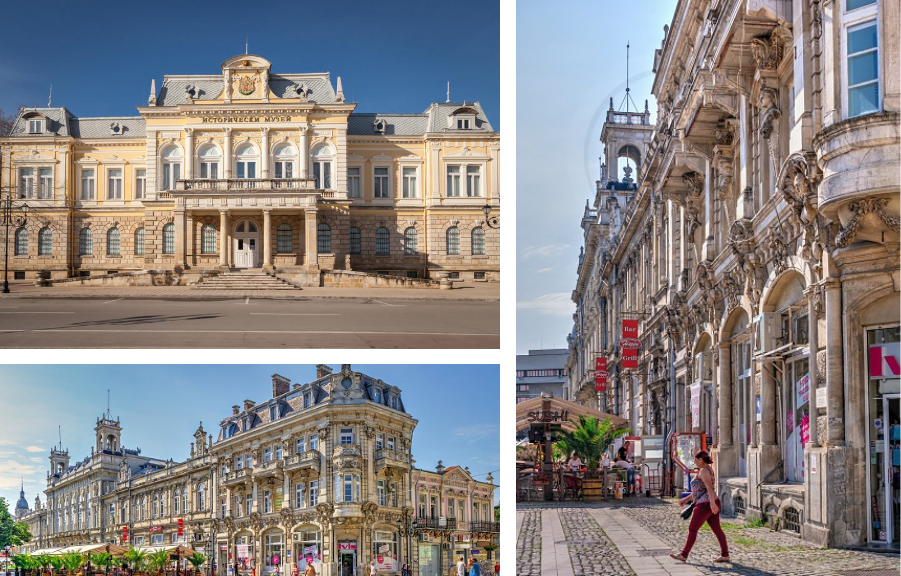Един преглед на архитектурното ни наследство, няма как да не започне от Русе – градът, познат като „Малката Виена“. Уникалният облик на града първи вплита следите на различни установени стилове в европейската архитектура, още през 19-ти век. Централната част и емблематичните здания на Русе са изградени по проекти на местни и чуждестранни архитекти и са изпъстрени с орнаменти в стилове като неокласицизъм и с елементи от сецесион, барок, ренесанс, готика и ампир. Идеята зад тези концепции, радващи окото ни и до днес, е максимално точното пресъздаване на усещането и влиянието на градове като Виена, Будапеща, Венеция и Букурещ. Подобна богата украса се среща при редица здания на територията на Русе като признатите паметници на културата са 267.