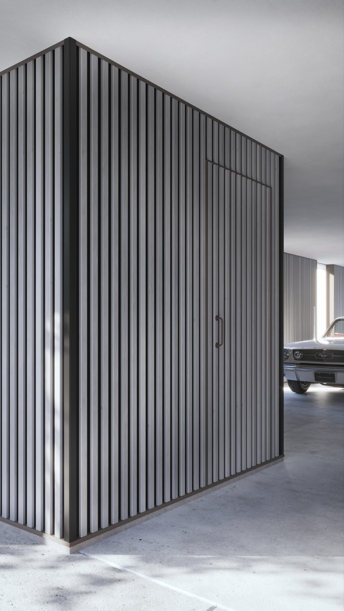 Панелите се явяват идеални решения за облицовка на външни стени и фасади, осигурявайки естетичеси минимализъм. Изработени са от рециклируеми материали – термично обработена естествена дървесина, фиксирана върху прахово боядисани алуминиеви листове.
